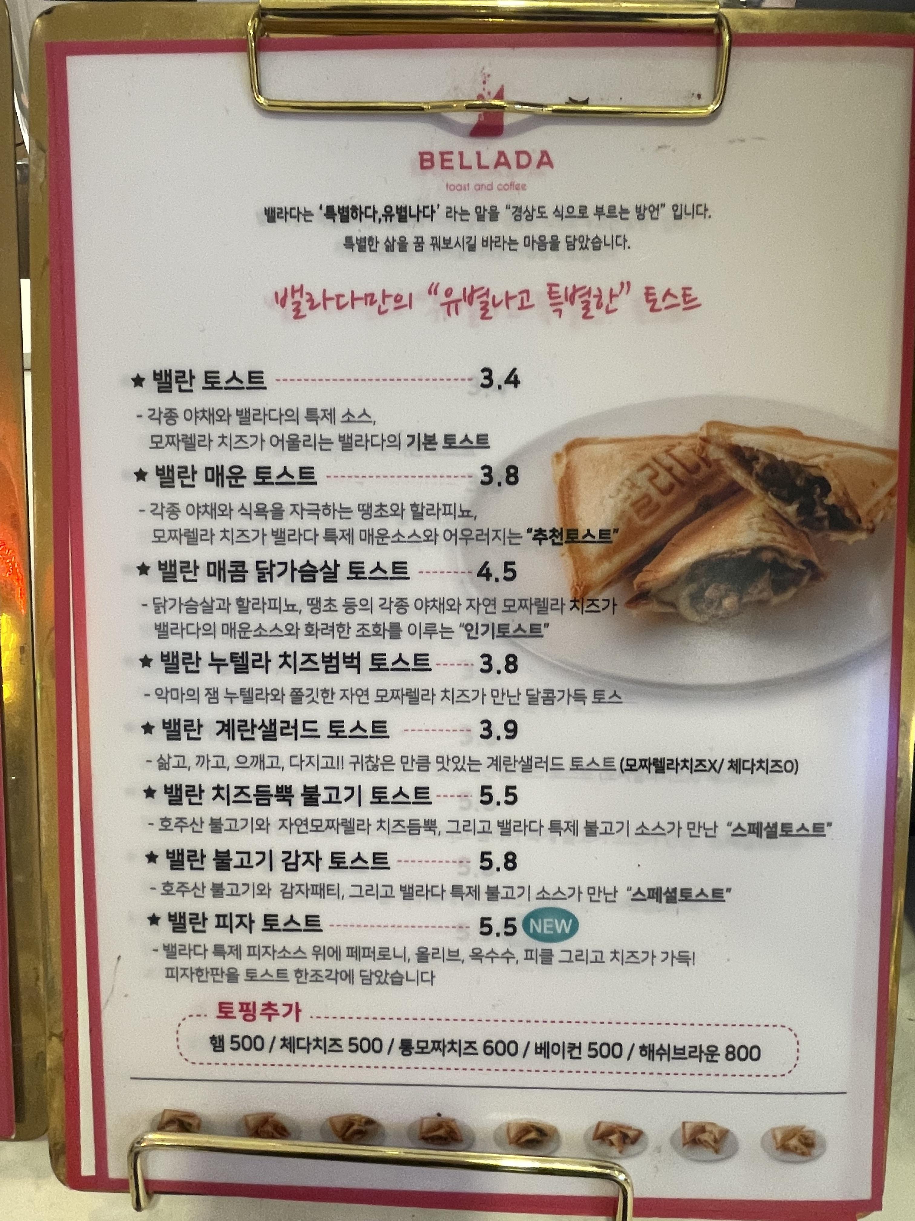 토스트에 적힌 '밸라다' 글씨가 인상적이네요 ㅎㅎ