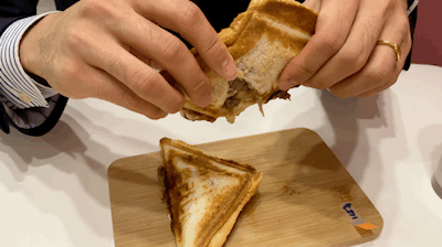 부푼 기대를 안고 먼저 '밸란 치즈듬뿍 불고기 토스트'를 반으로 갈랐는데,,, 여러분 치즈 보이세요,,,???!!!