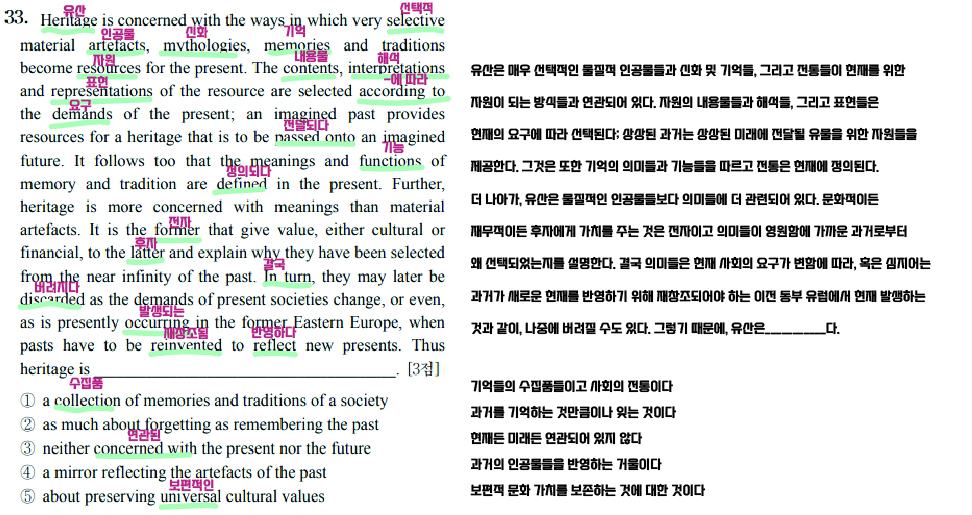 물론 이는 지문을 이해하려는 노력이 꾸준히 필요하다.