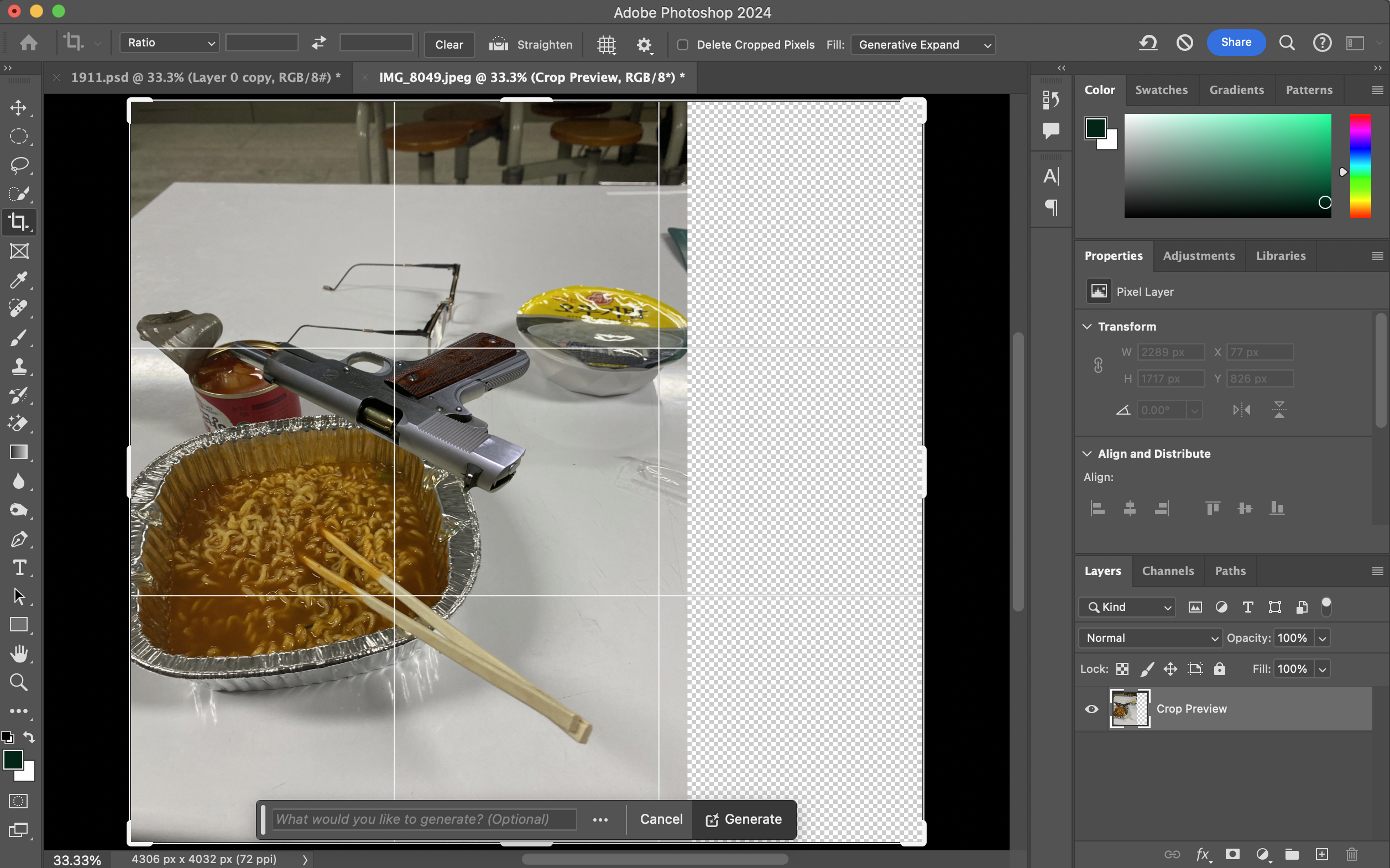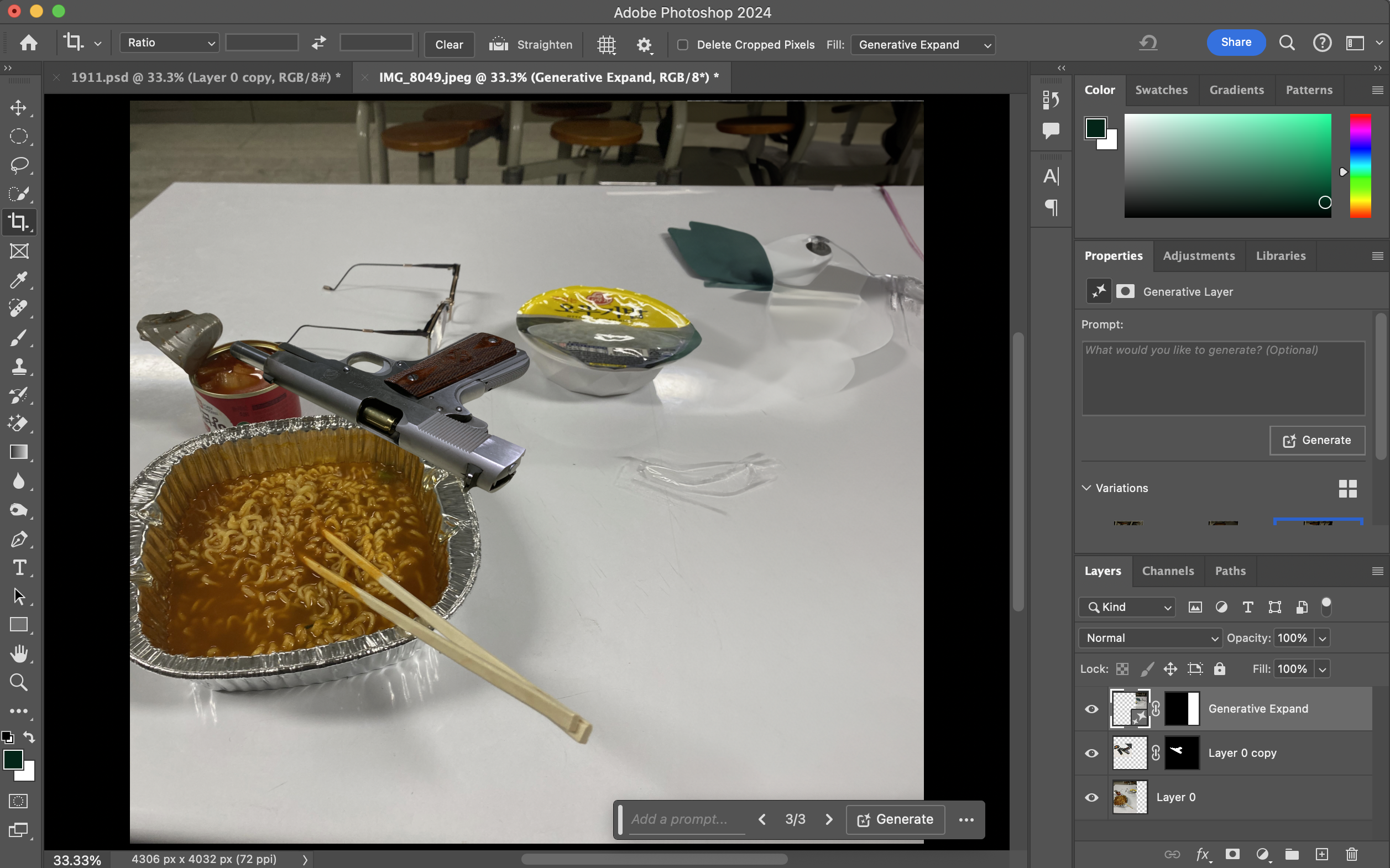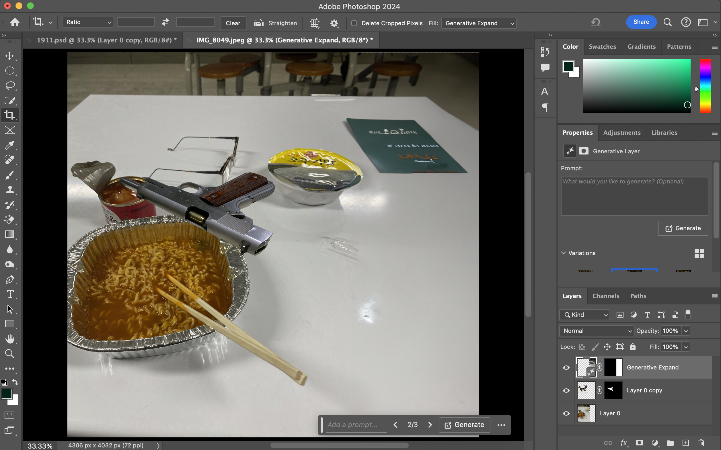 여기서 Fill을 Generative expand로 설정하면 아래와 같이 AI가 주변 환경과 알맞게 사진을 생성해낸다.