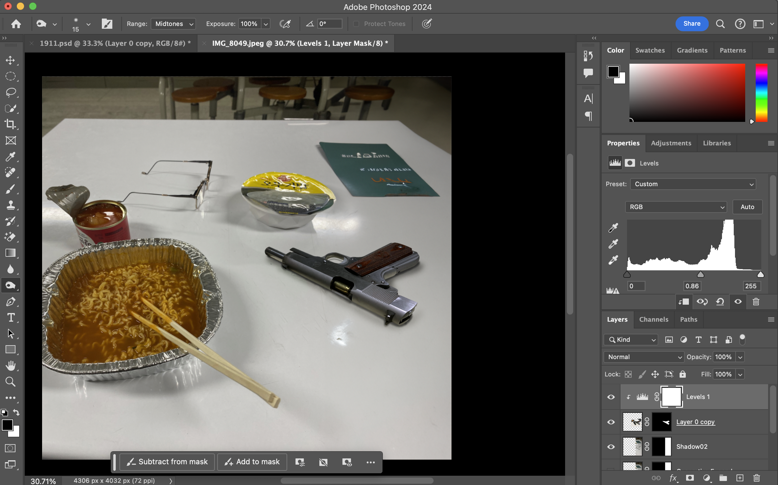 이미 충분히 괜찮아보이지만, 더 자연스럽게 보이기 위해서 레벨을 적용하기로 했다.