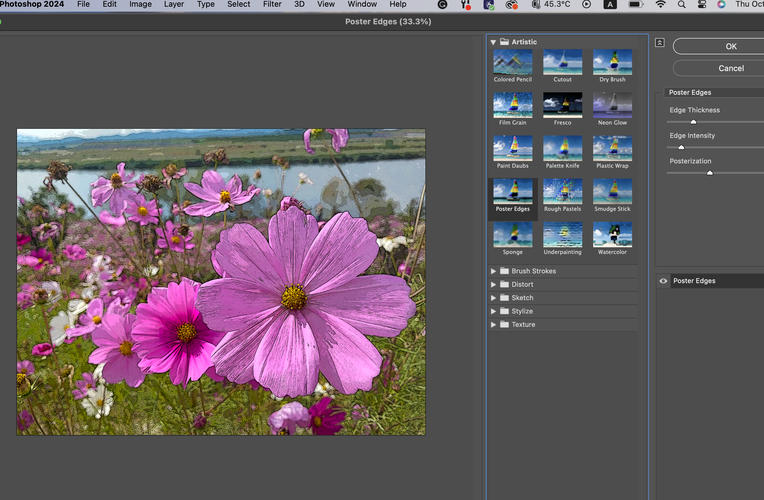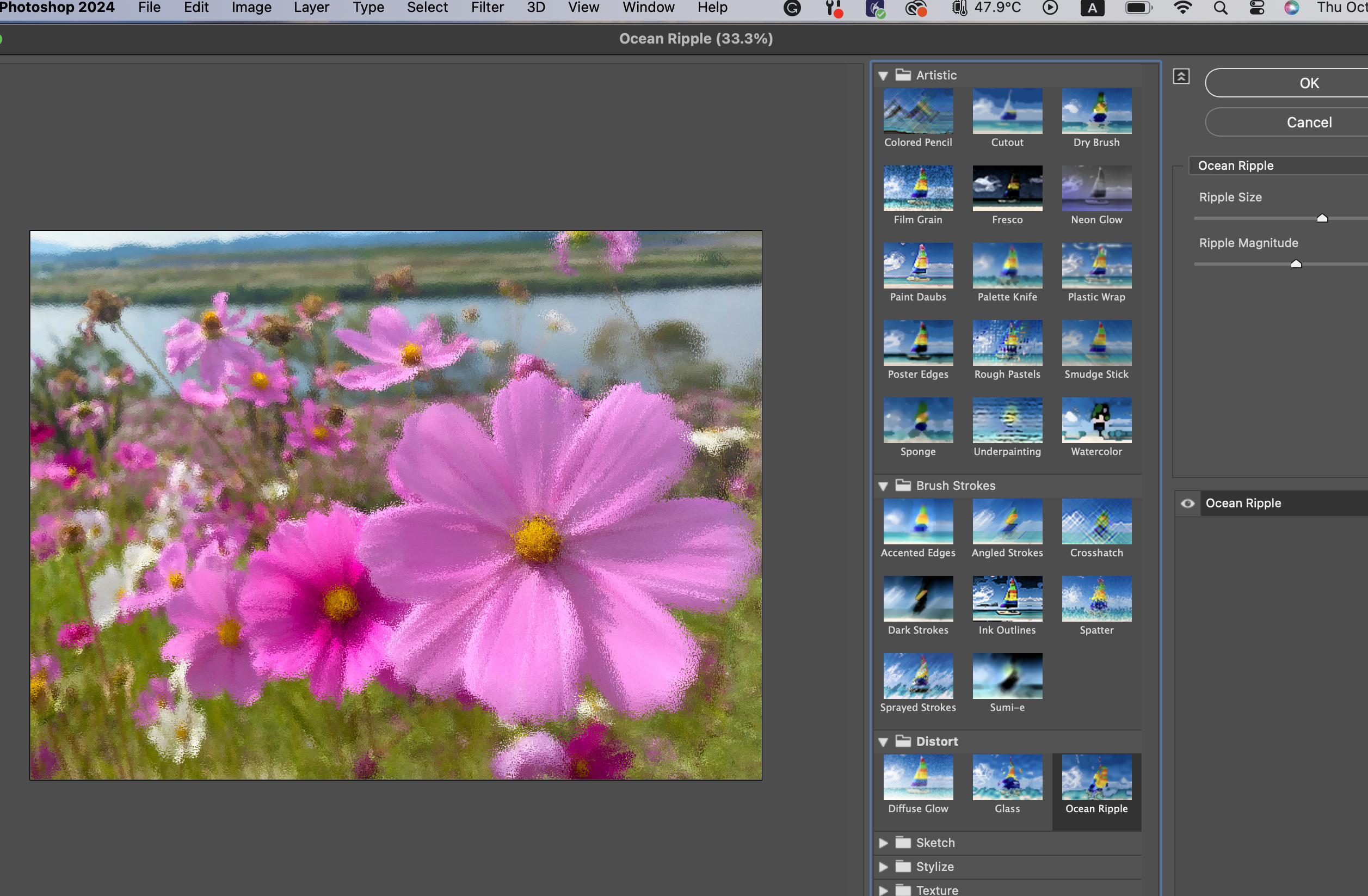 Filter Gallery를 보면 무수히 많은 필터들이 있어서 원하는 필터를 적용해가며 고르면 된다. 현란한 것들이 많은데