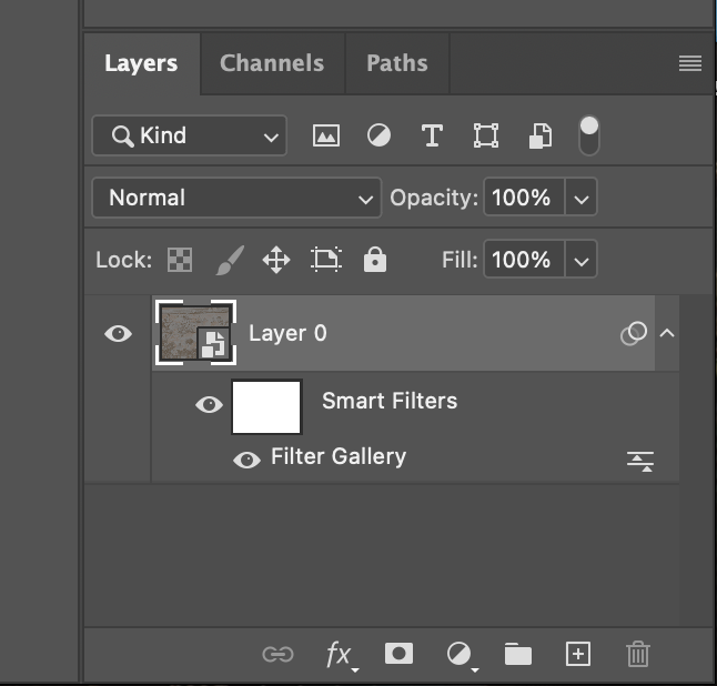 레이어 쪽을 보면 Filter Gallery가 있는 것을 확인할 수 있다. 이를 선택하고 휴지통으로 드래그하여 삭제하자