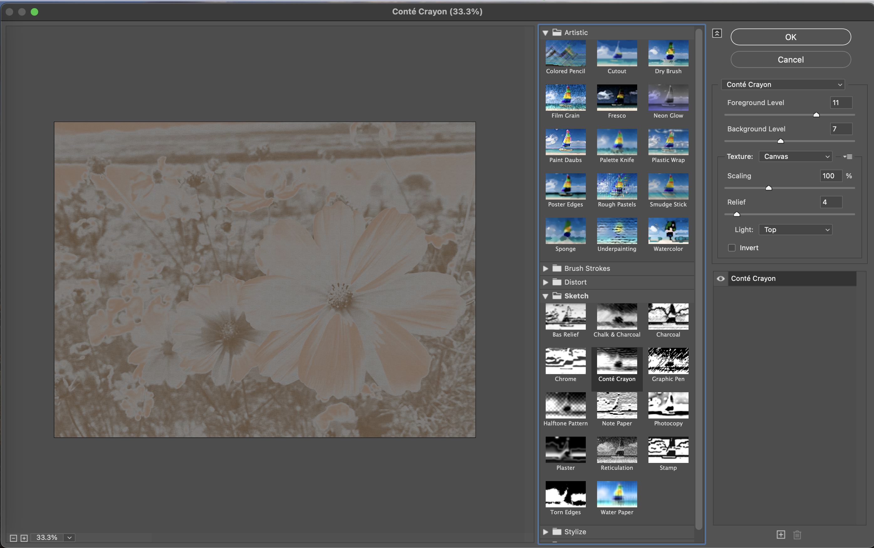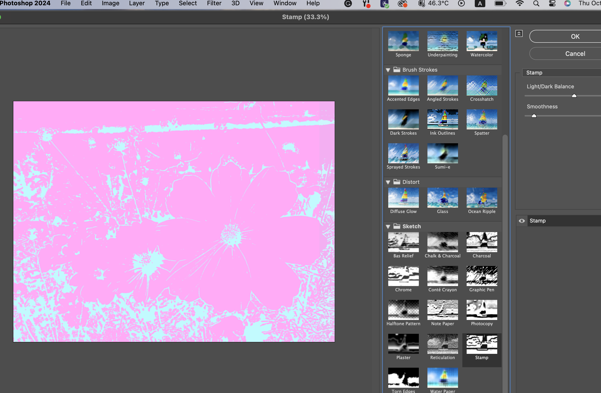 그런데, 색을 바꿨다고 다시 바로 Filter Gallery로 넘어가도 달라질 게 없다. 그래서 다음 조치를 취해야 한다.