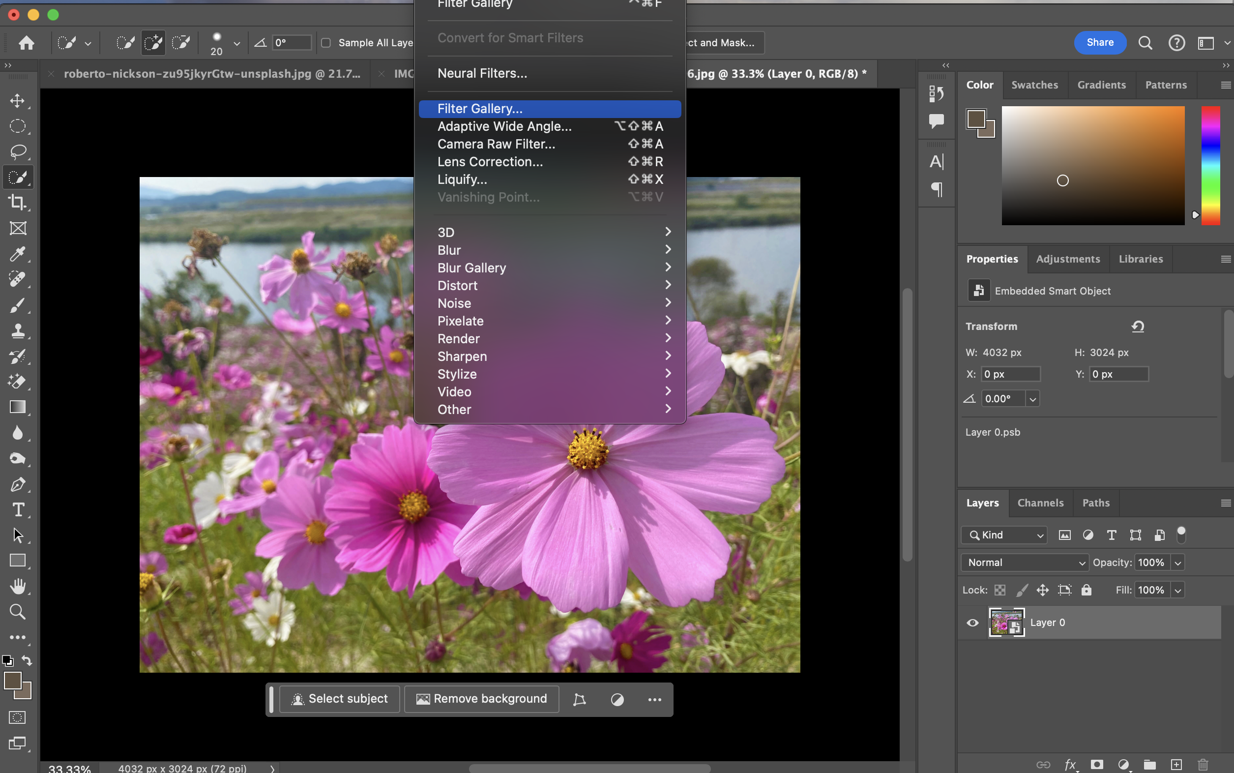 앞서 다뤘듯이, 필터를 적용하려면 맨 위 필터 창을 열면 여러 옵션들이 나온다. 그 중에서 Filter Gallery를 선택해보면