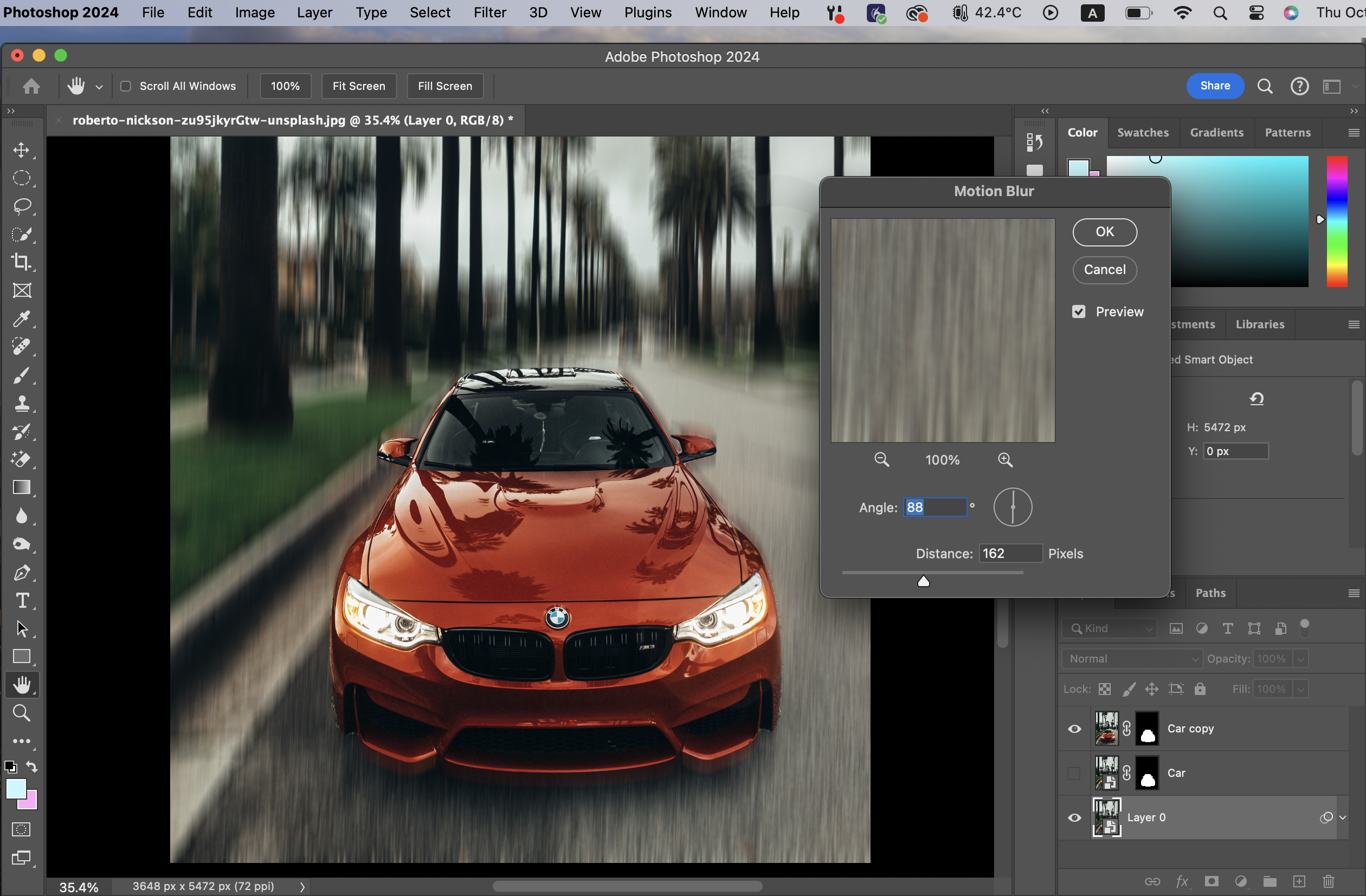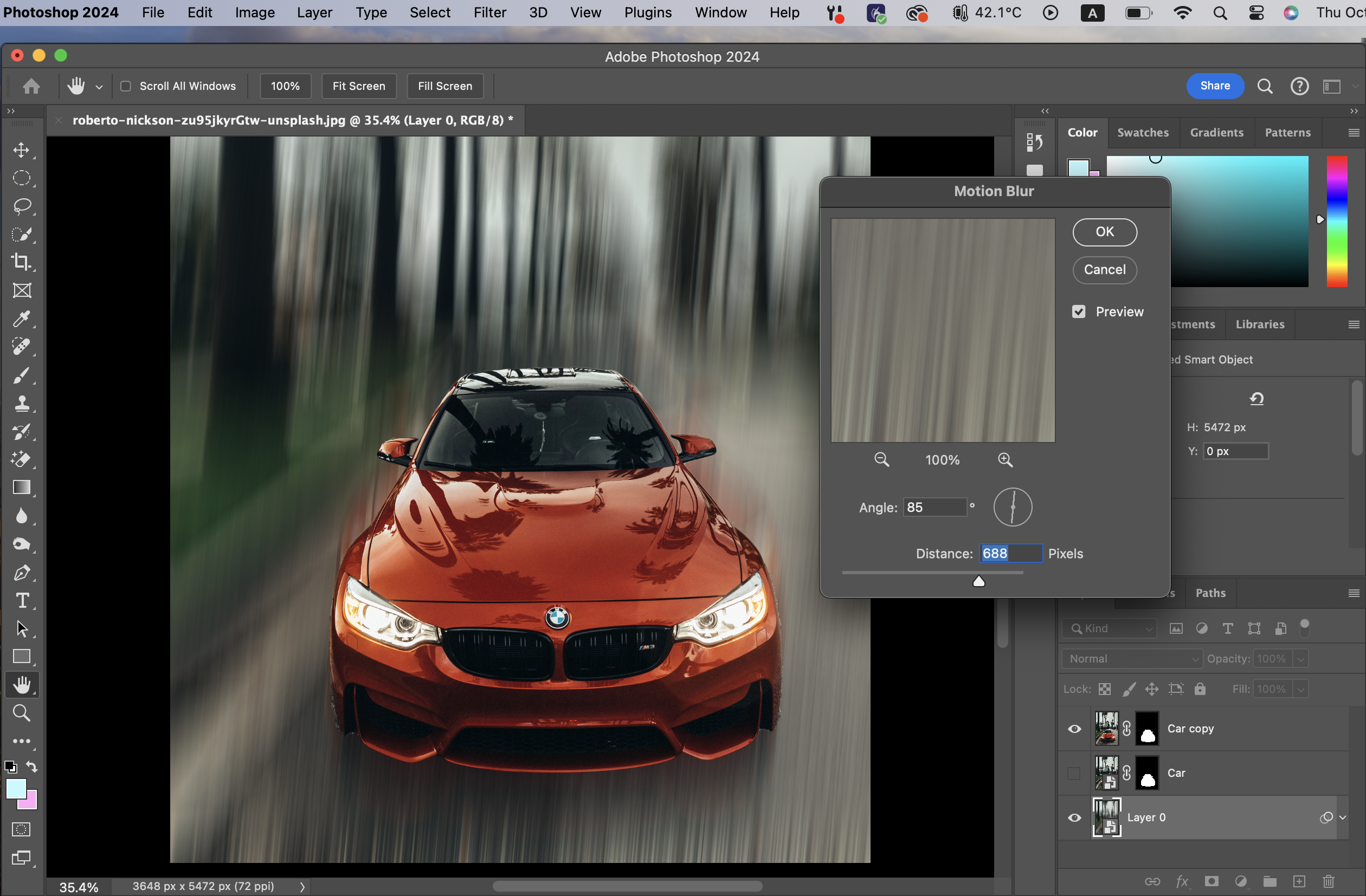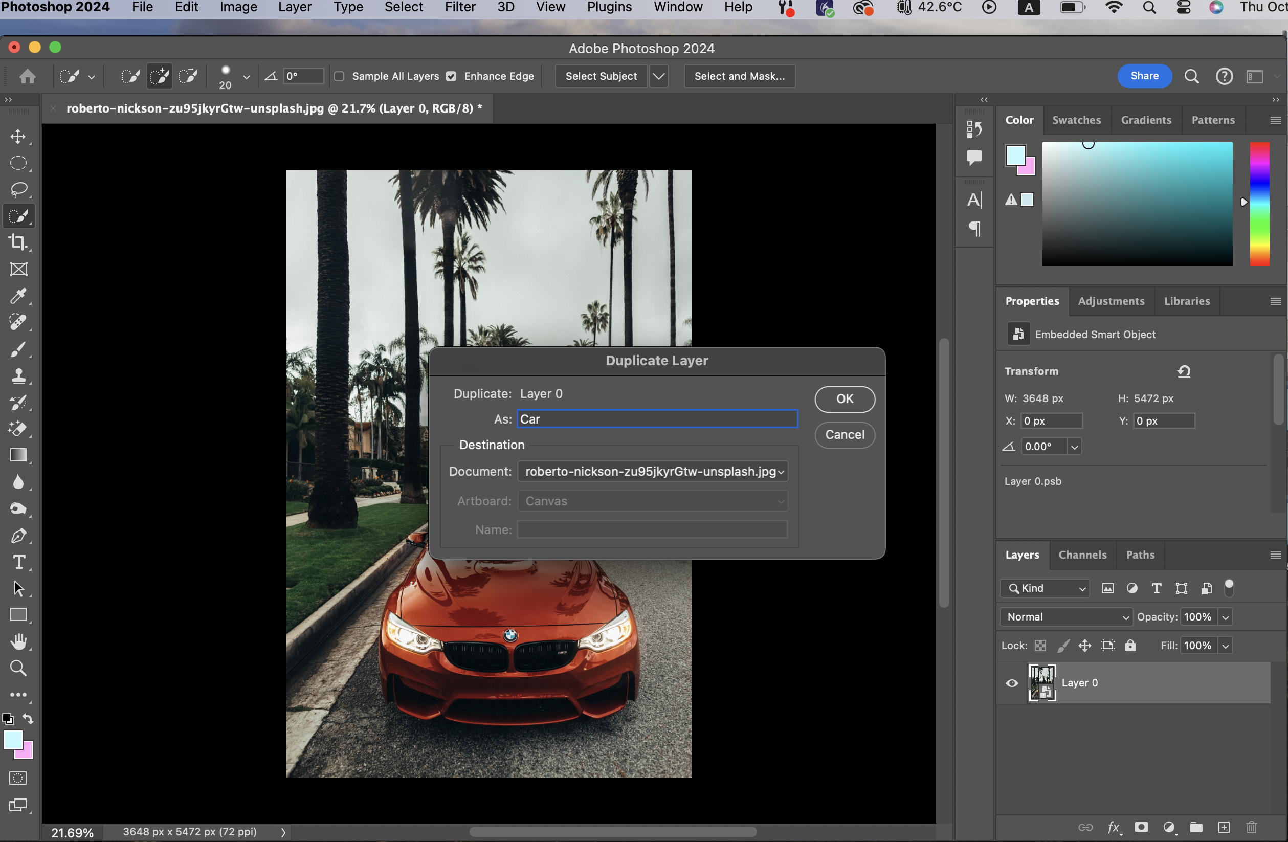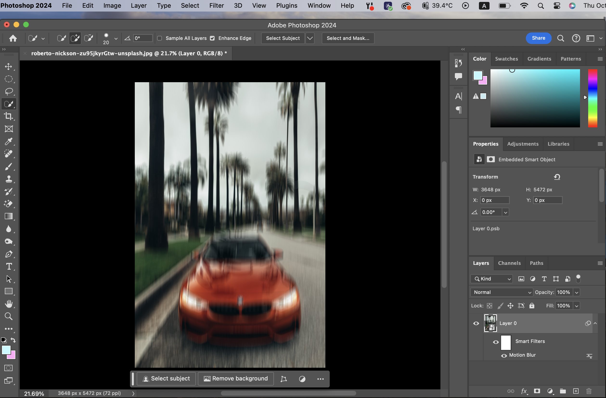 Quick selection tool로 자동차를 선택하고 난 뒤에
