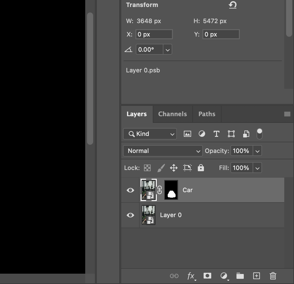 이때 레이어를 배경 레이어를 선택하지 않으면 차가 바닥으로 꺼지게 되는 효과를 연출한다.