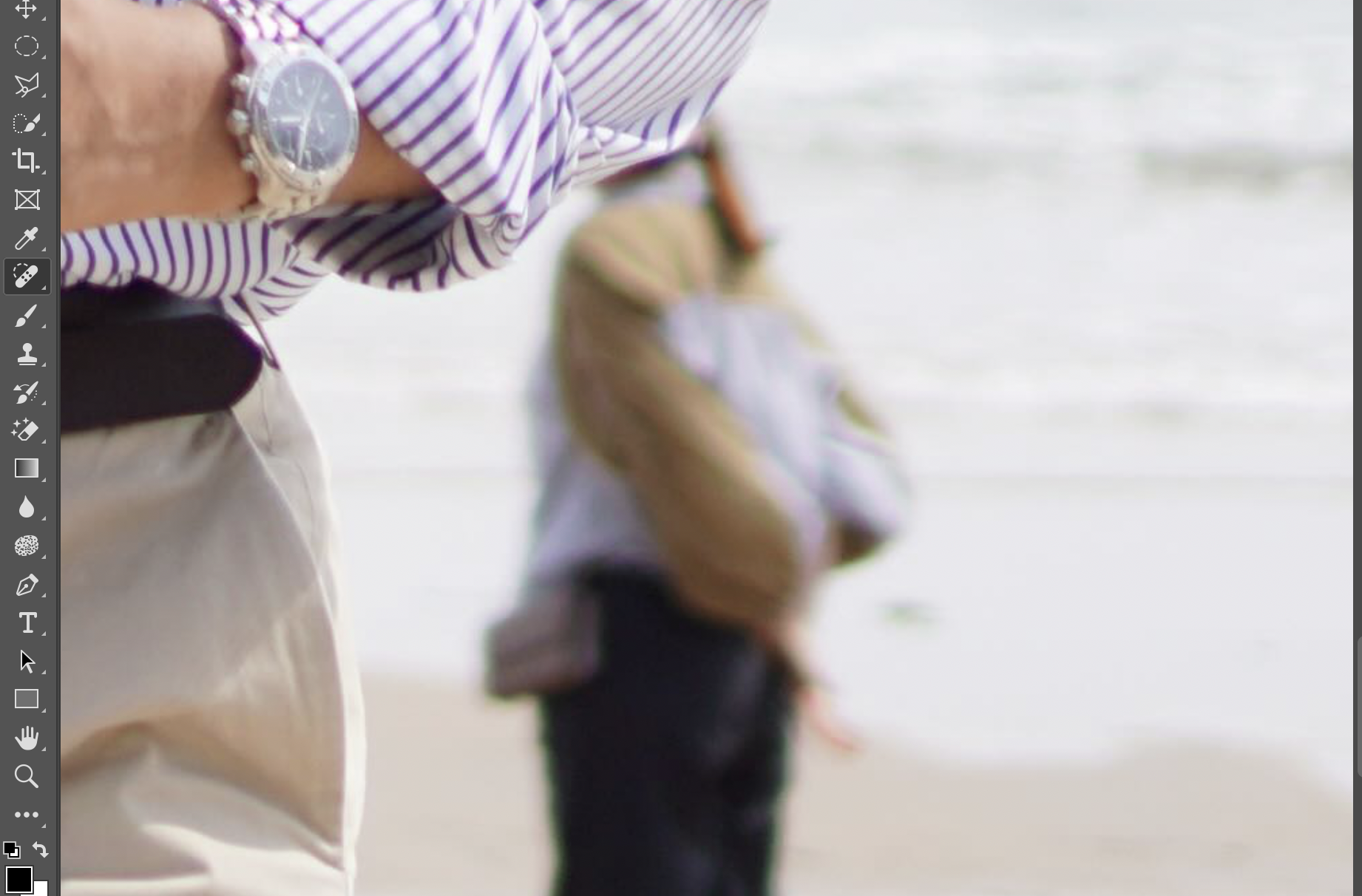마찬가지로, 우측에 계신 분도 동일한 방법으로 지우고 Spot Healing Brush Tool로 보정을 하다보면
