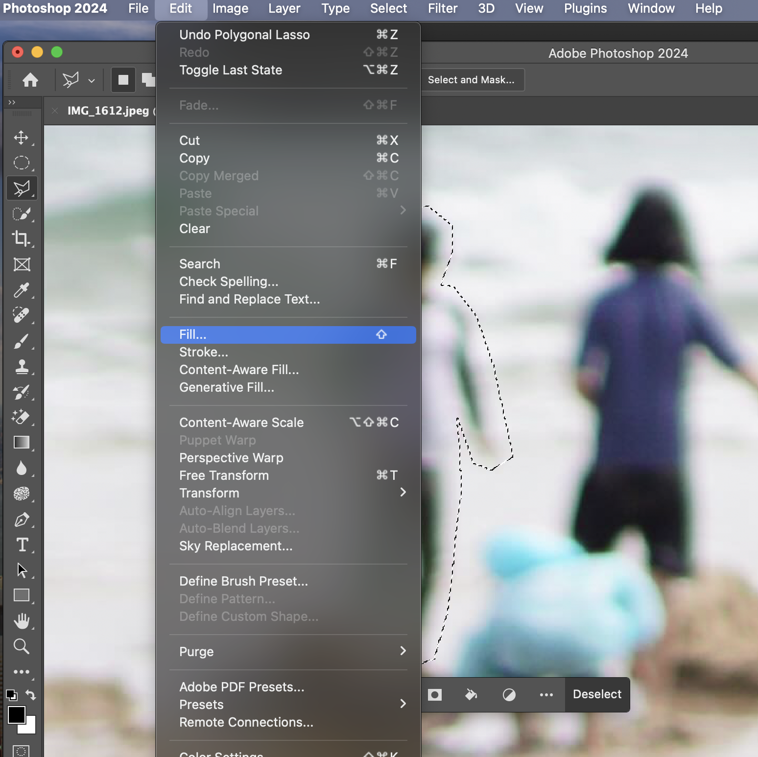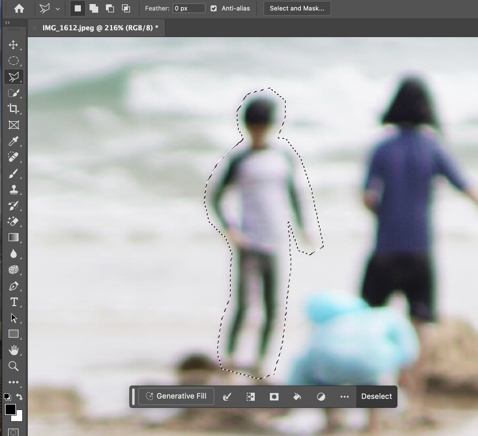 앞서도 봤듯이, Polygonal Lasso Tool로 물체를 지워도 잔상이 조금 남아 있는 것을 확인할 수 있다.