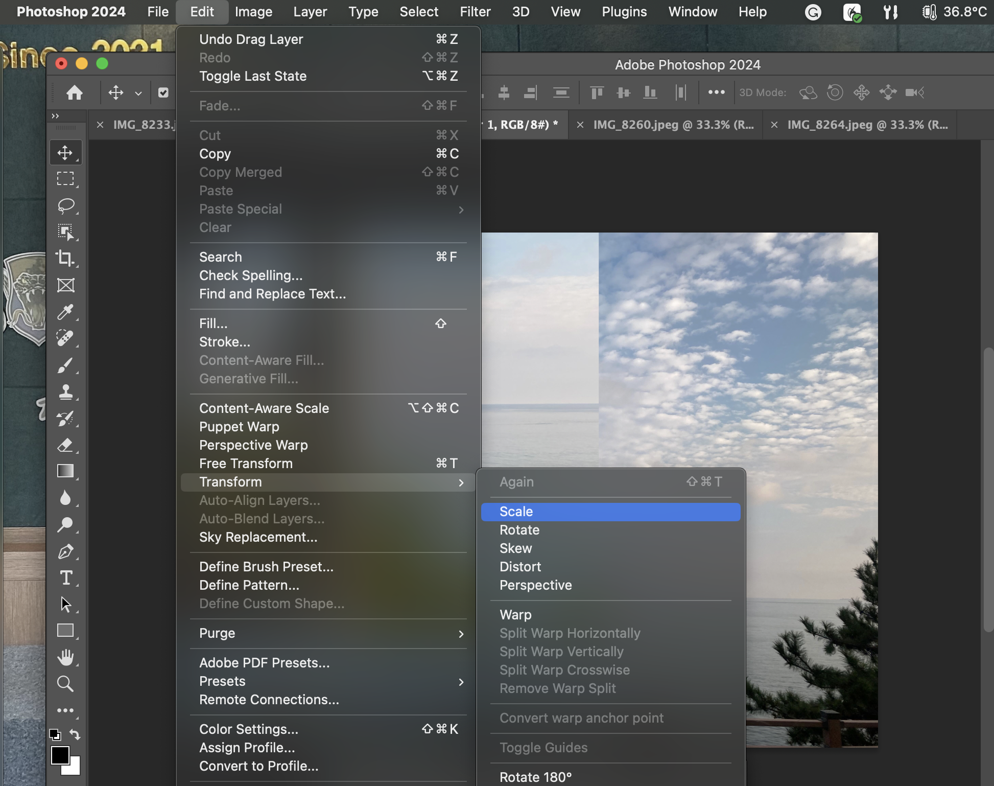 이미지 크기 조정: Edit->Transform->Scale을 통해 크기 조정하기