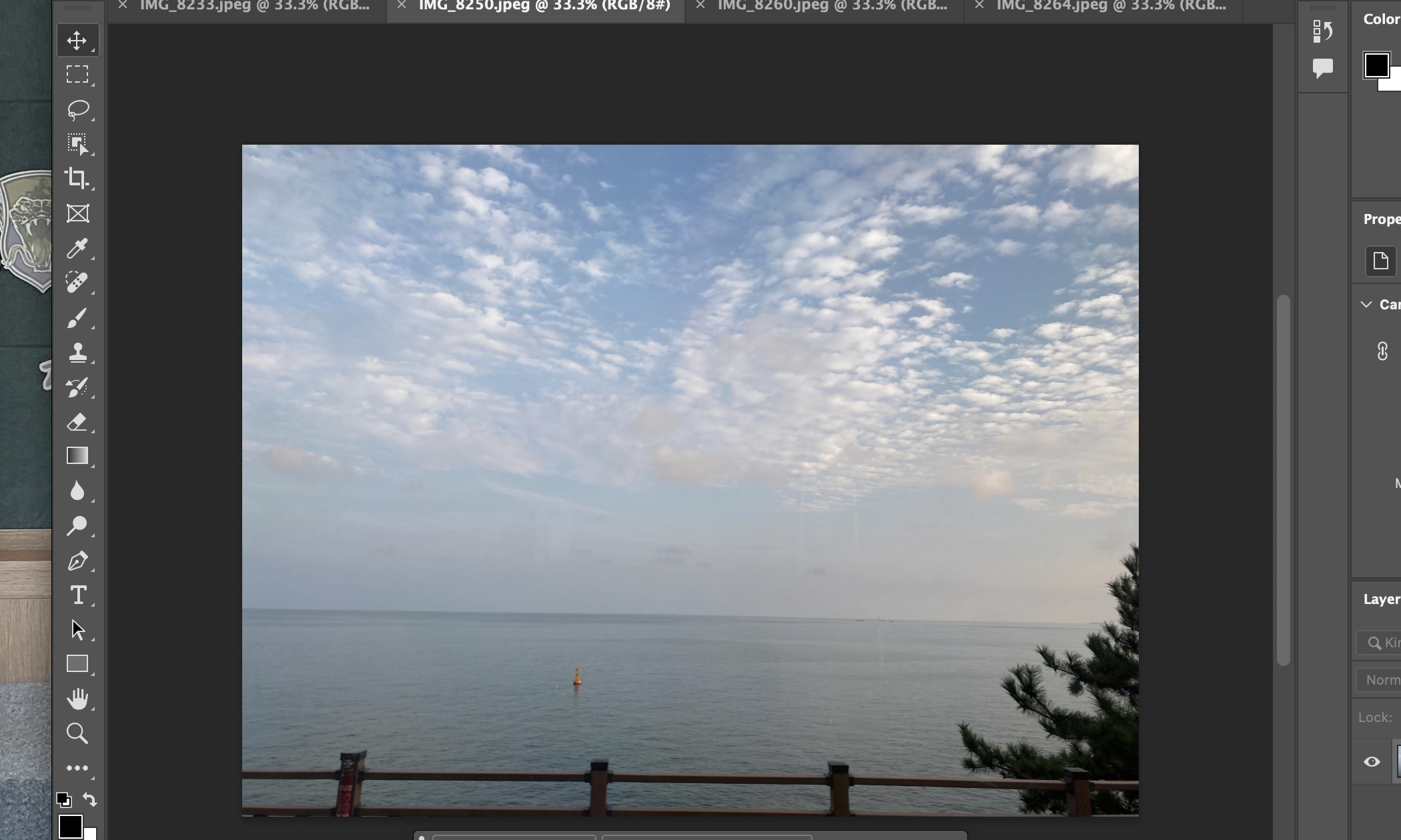 Move tool을 사용하여 각 사진들을 배경 사진 탭으로 끌고 오는 식으로 사진을 합쳐주면 된다.