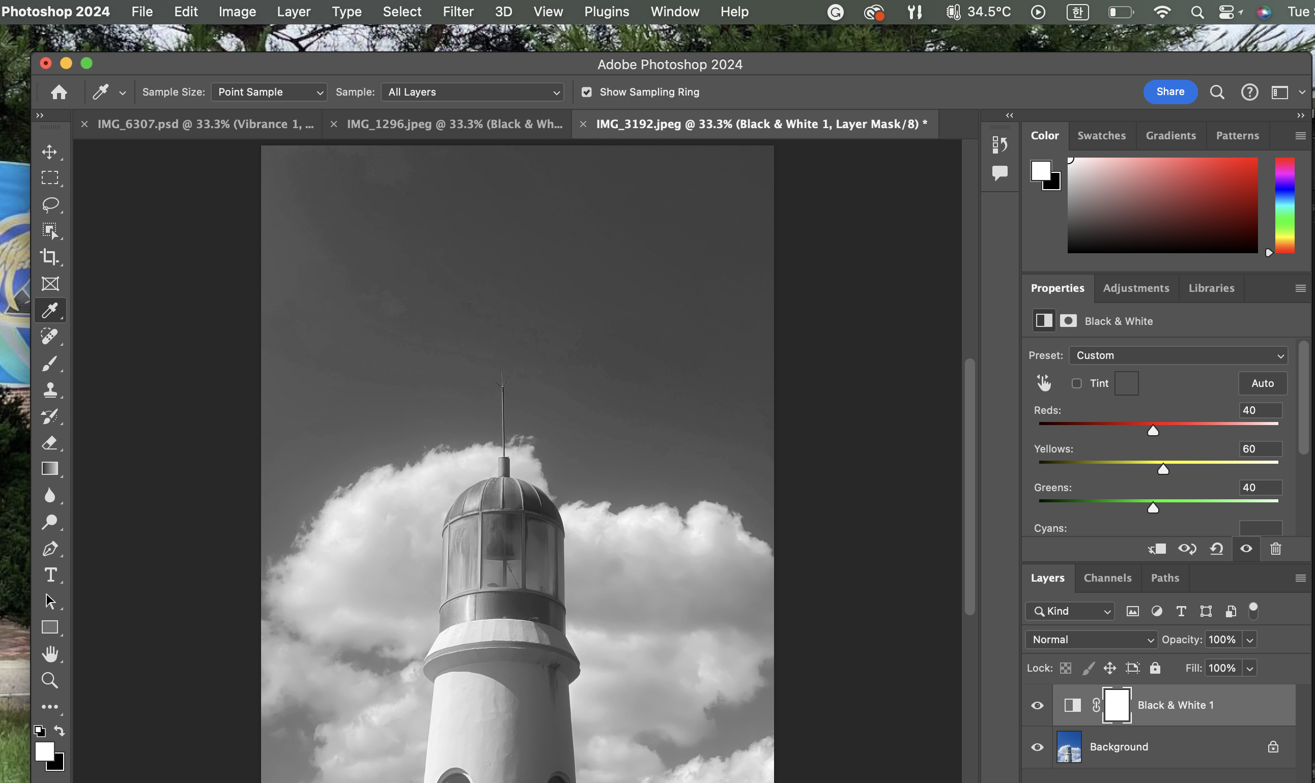 Black & White를 누르면 흑백이 바로 적용된다.