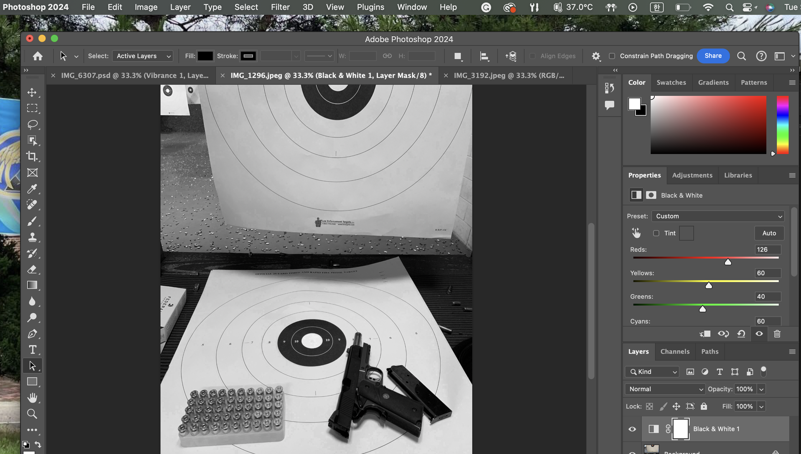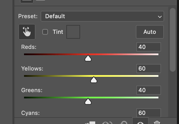 다른 색들도 동일한 방식으로 조정할 수 있지만, 흑백인만큼 어느 색이 어느 색인지 알고 있기가 어렵다.