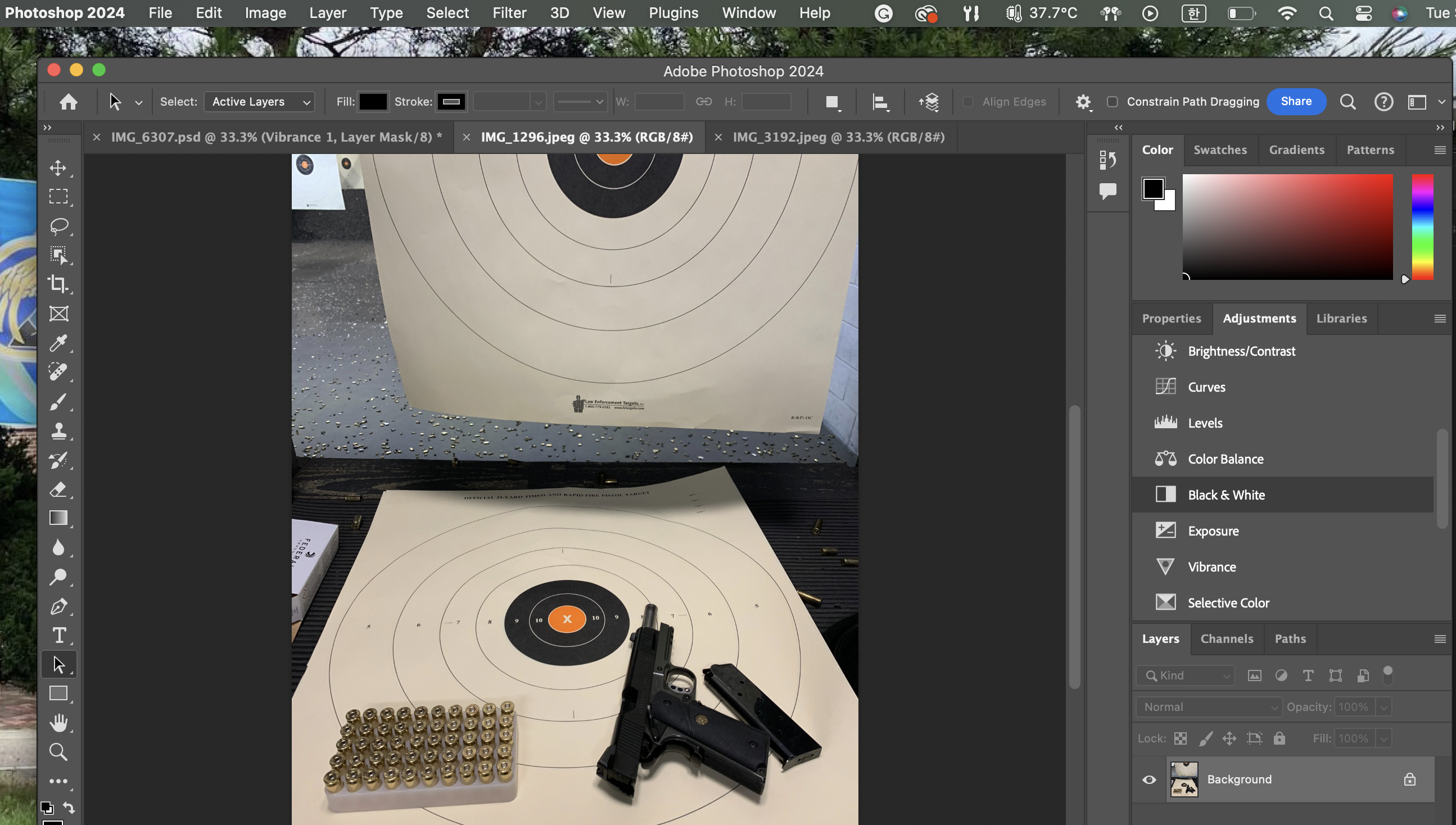한 객체의 색을 변경할 때 사용했던 Hue/Saturation과 동일하게, Black & White는 Adjustment 윈도우에서 찾을 수 있다.
