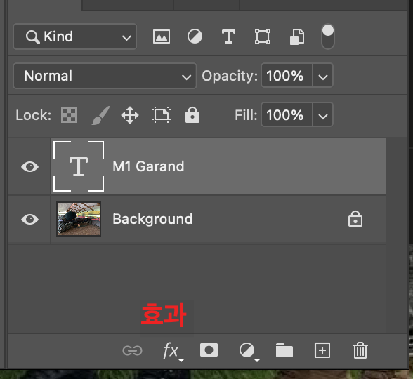 우측 하단에 있는 레이어 쪽으로 눈을 돌려서 텍스트 레이어 클릭 후에 'fx'라고 적힌 효과탭을 누른다.