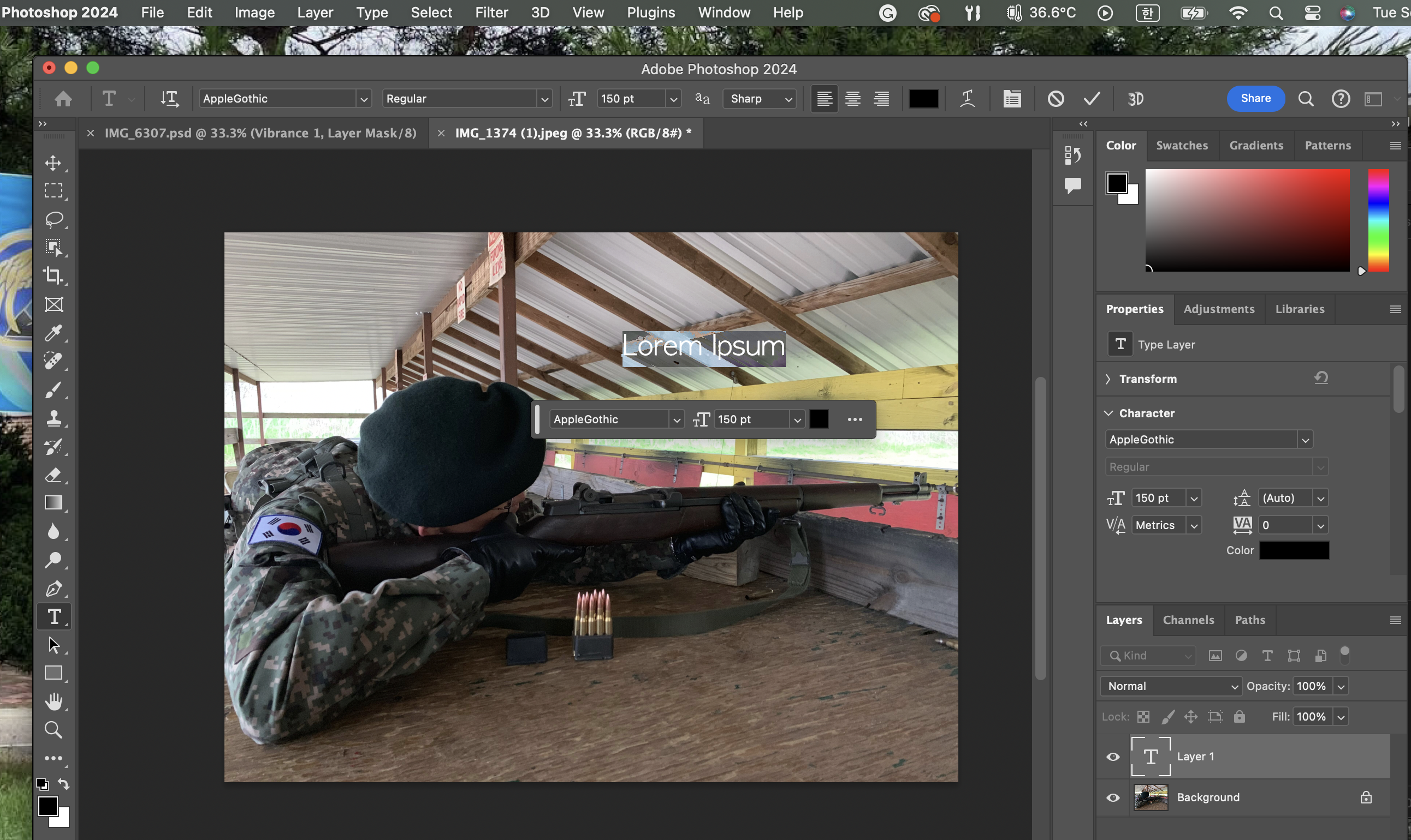 1.1. 텍스트 삽입하기, 폰트 및 크기 조절