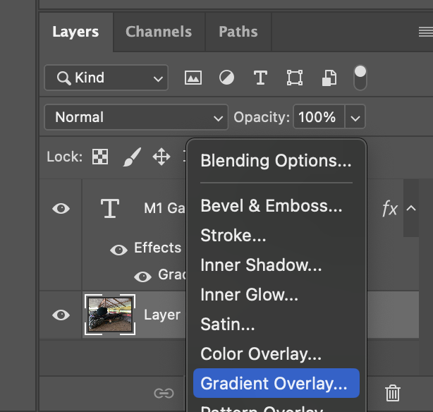 여러 옵션들이 등장하는데, 이 중에 Gradien Overlay를 클릭한다.