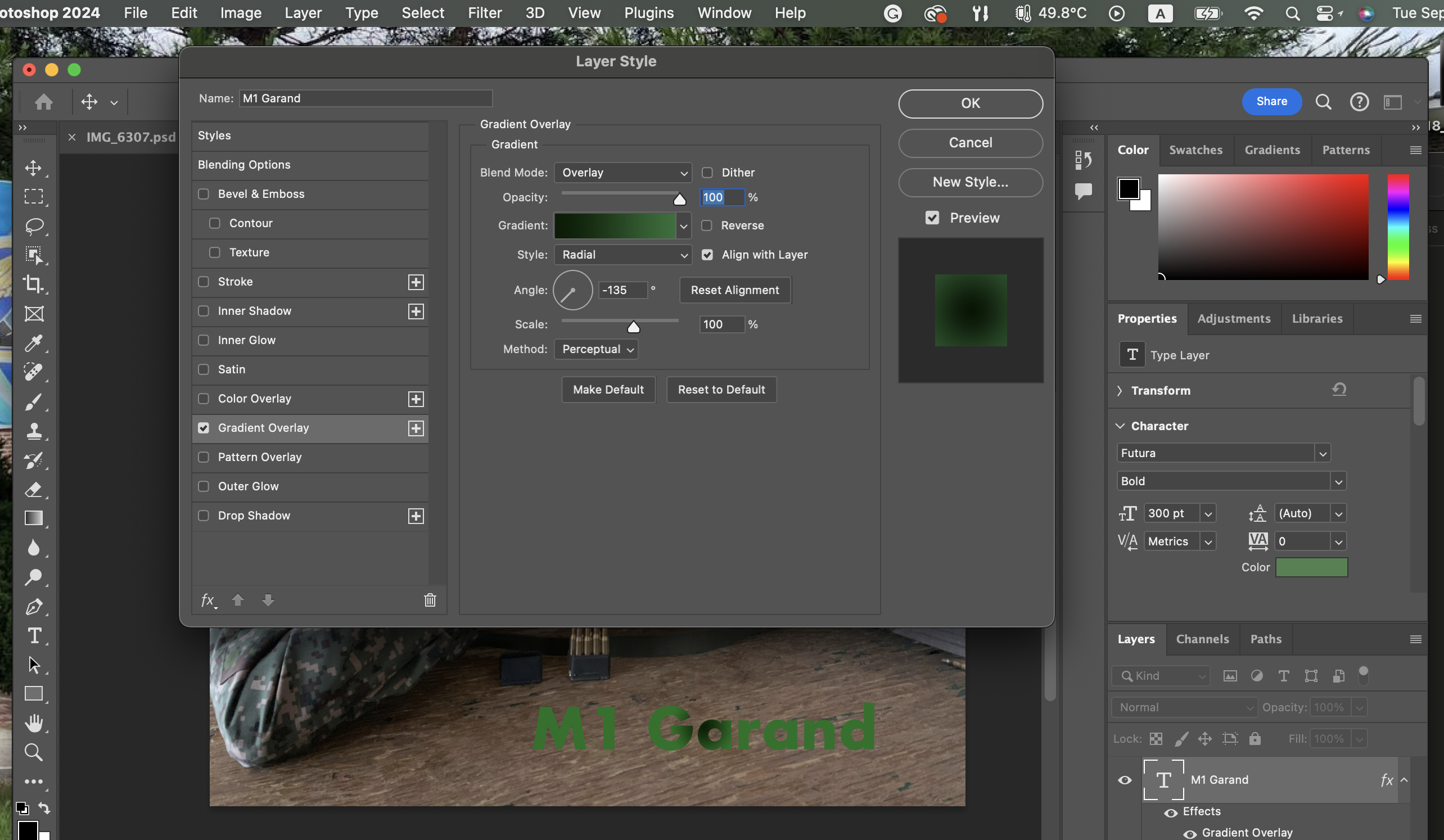Gradient Overlay를 클릭하면서 폰트에 그래디언트가 적용된다. 하지만, 원하는 색이 아니다보니 조정을 해야 한다.