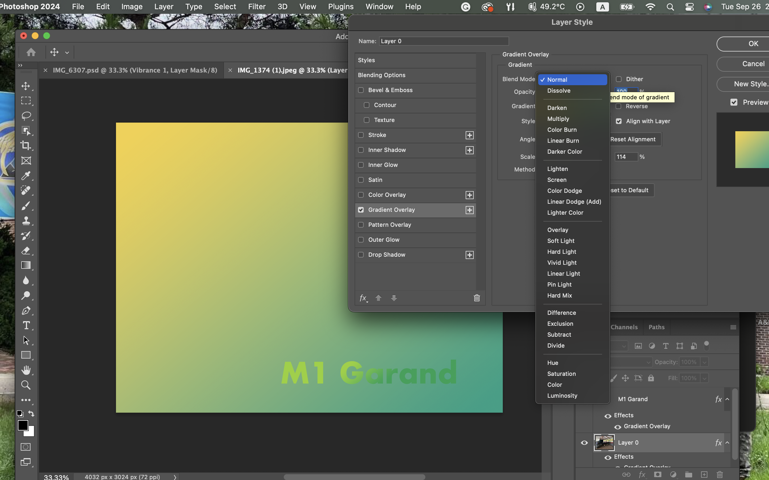 그러면 초기에 그래디언트만 나오게 되는데, Blend Mode로 들어가서 여러 가지를 눌러본다.