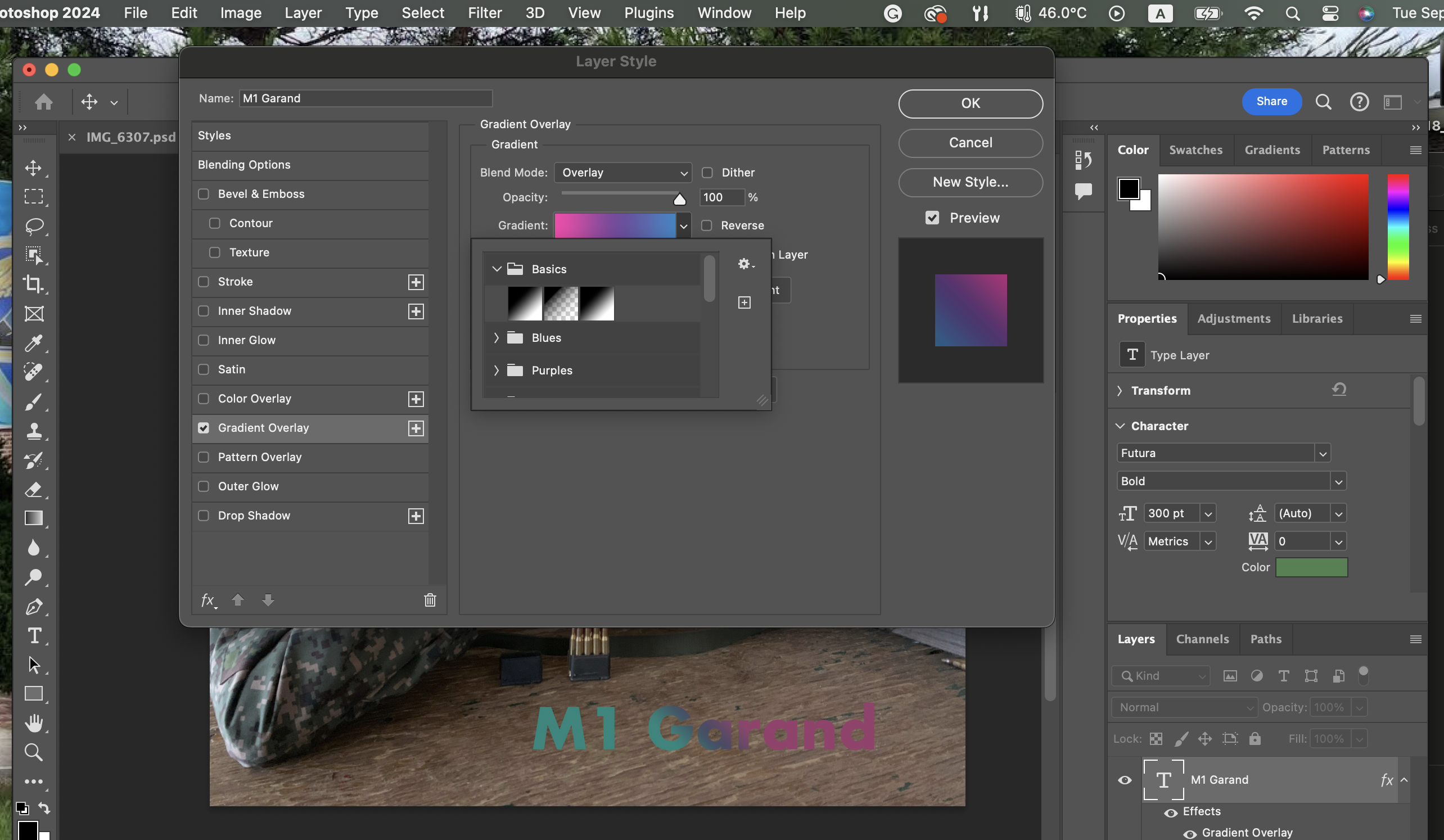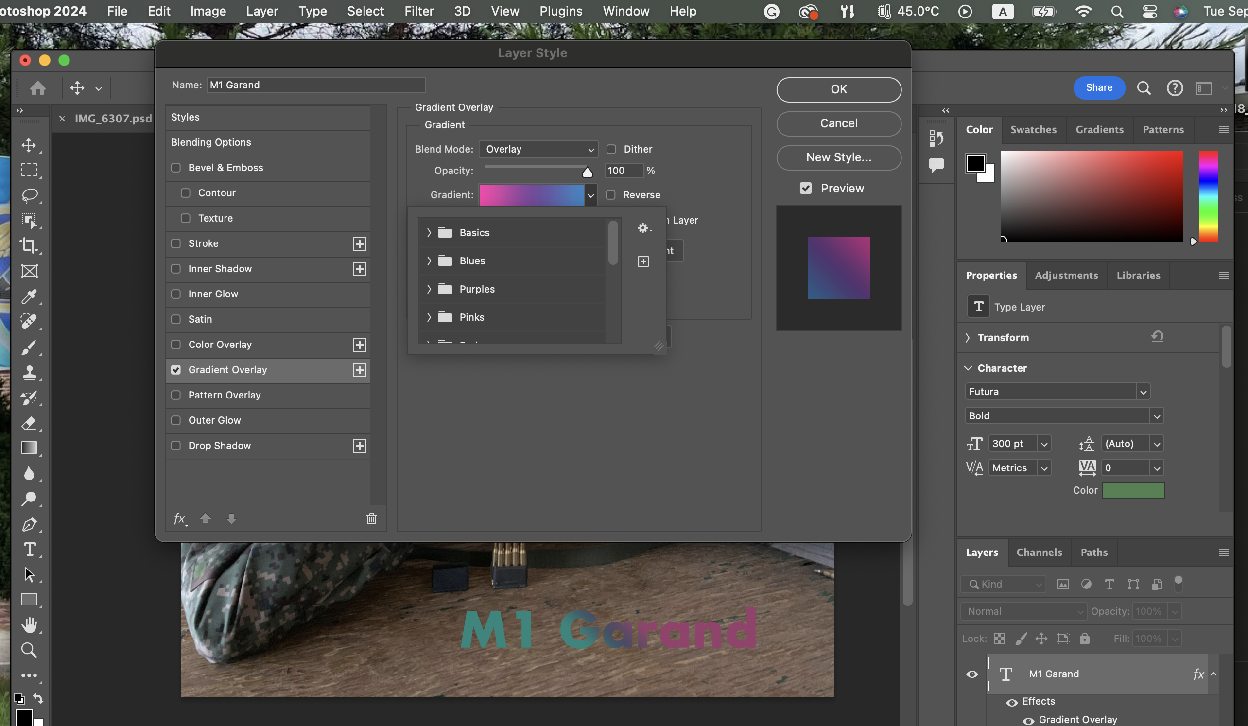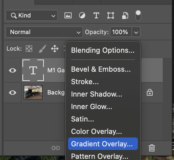 여러 옵션들이 등장하는데, 이 중에 Gradien Overlay를 클릭한다.
