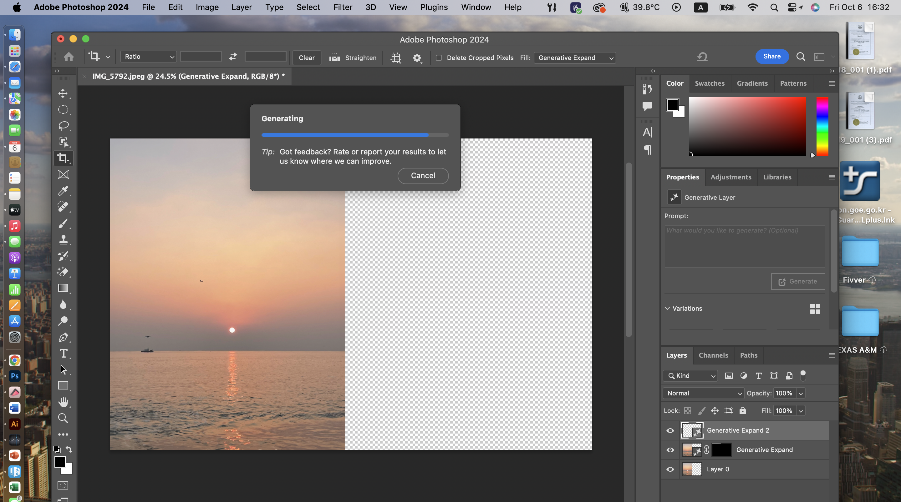 아무쪼록, 이 생성 AI를 사용하고 싶다면, Generative Expand를 클릭하면 된다.