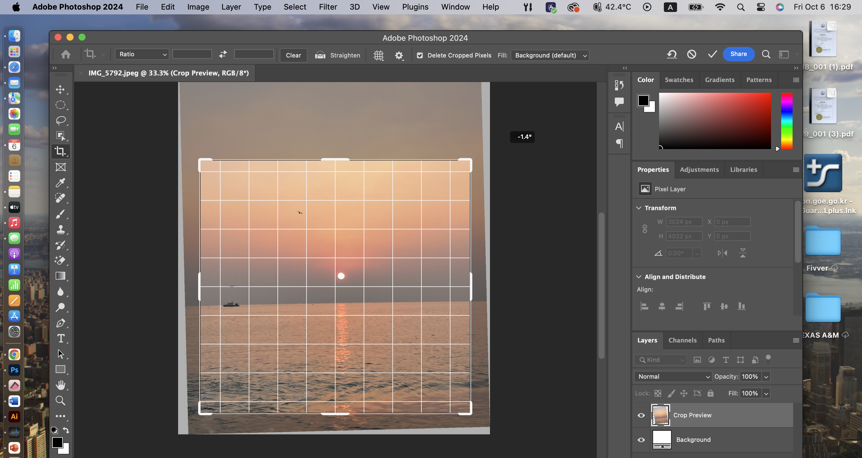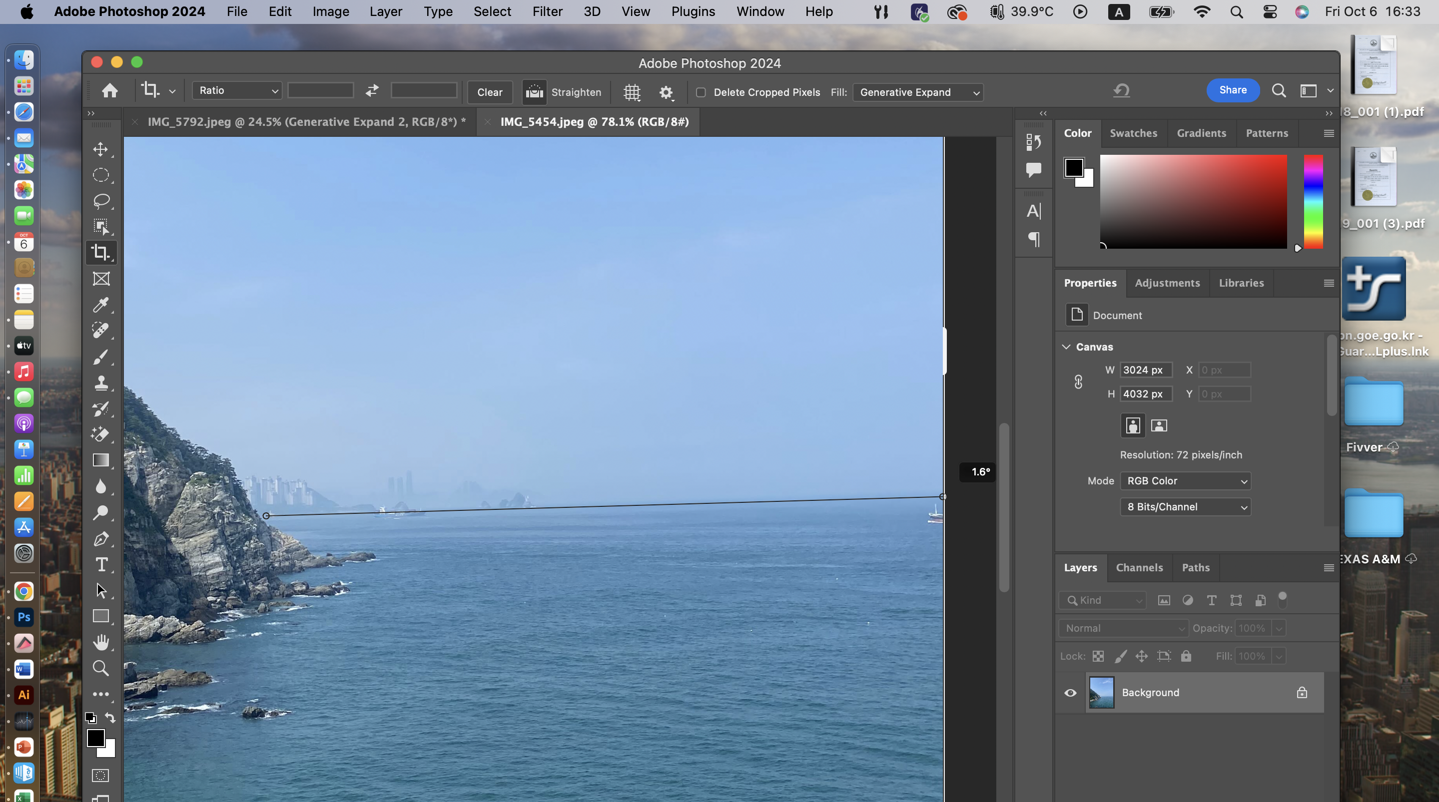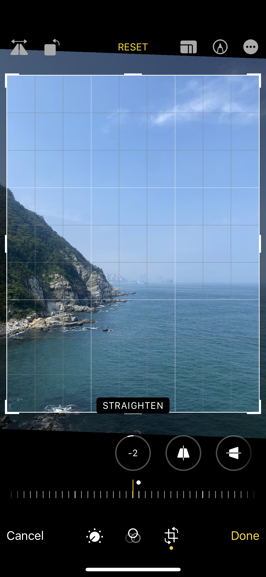 물론, Straighten이라는 기능을 사용해서 수평선을 그으면 알아서 수평을 맞춰주기도 한다.