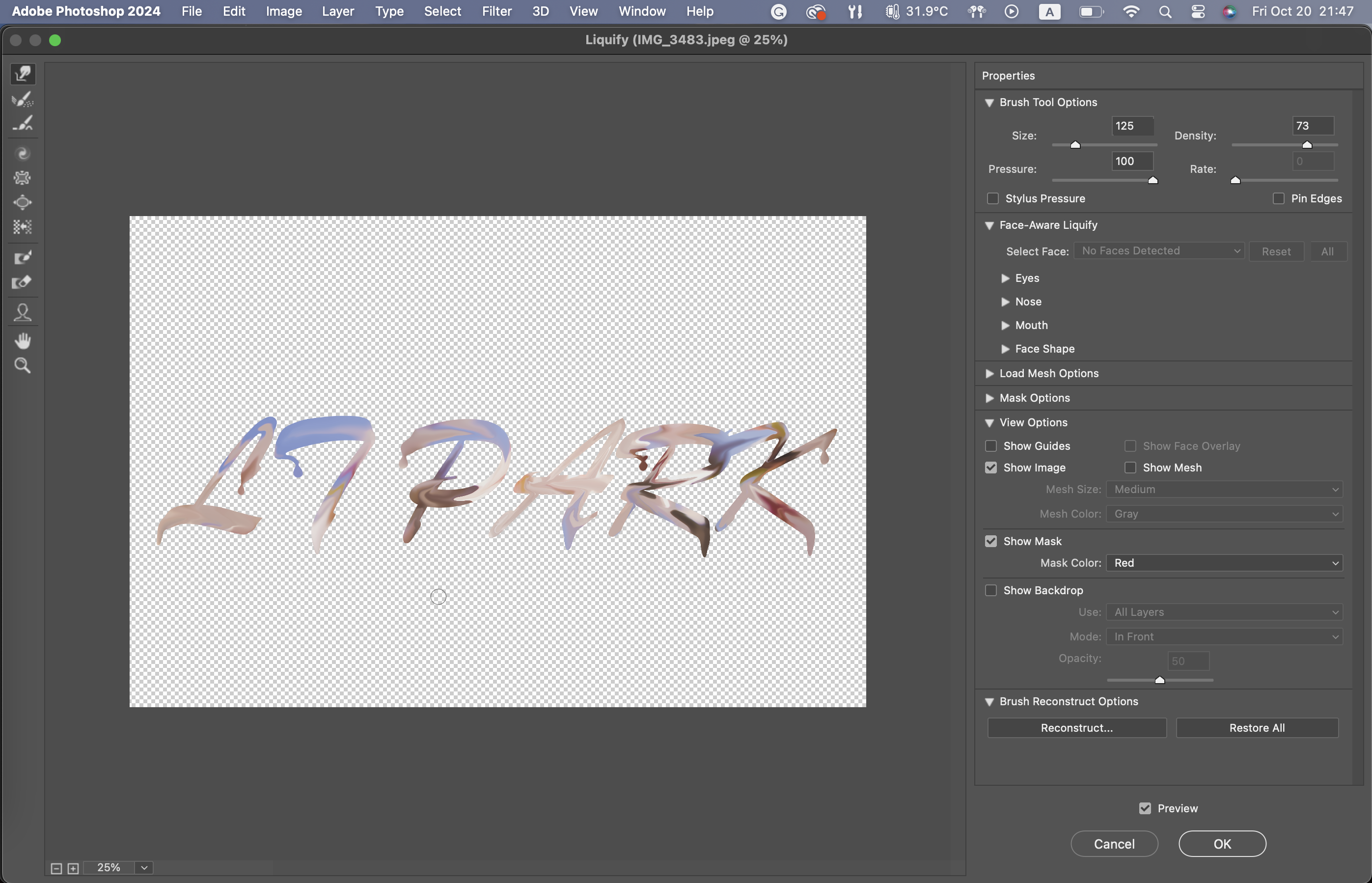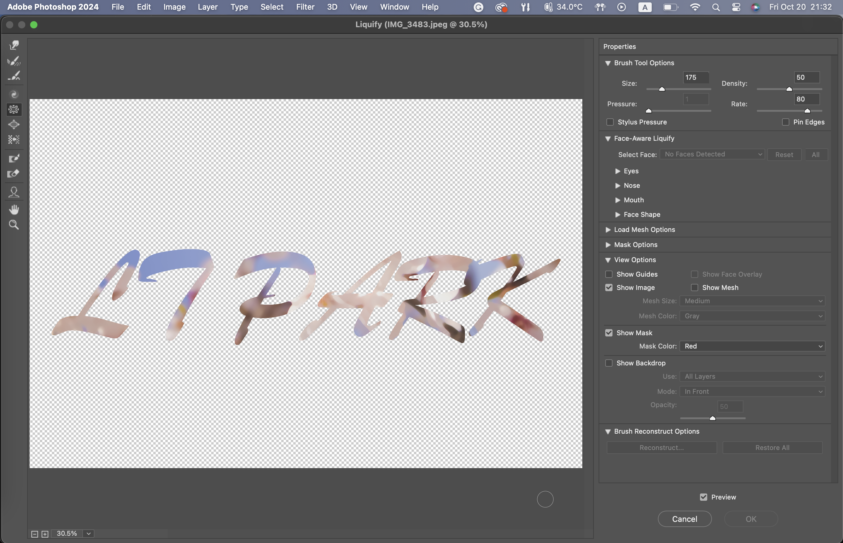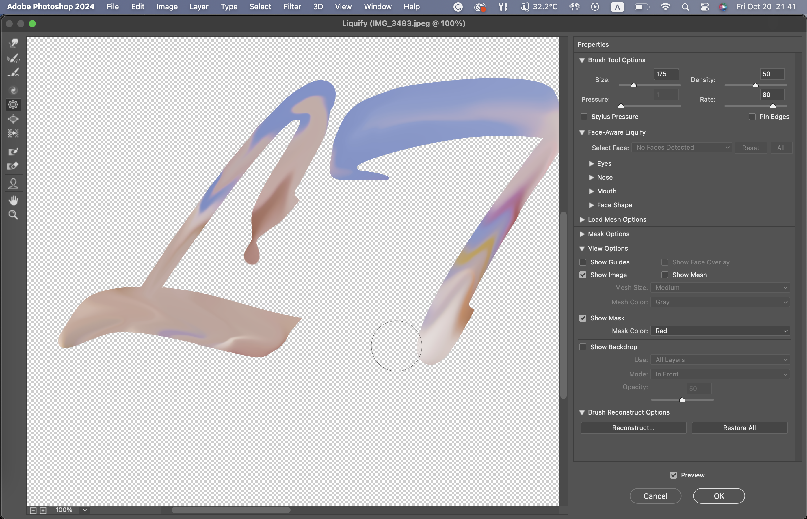 아까 Liquify에서 하지 못한 것이 있는데, 이미 떨어진 페인트 방울은