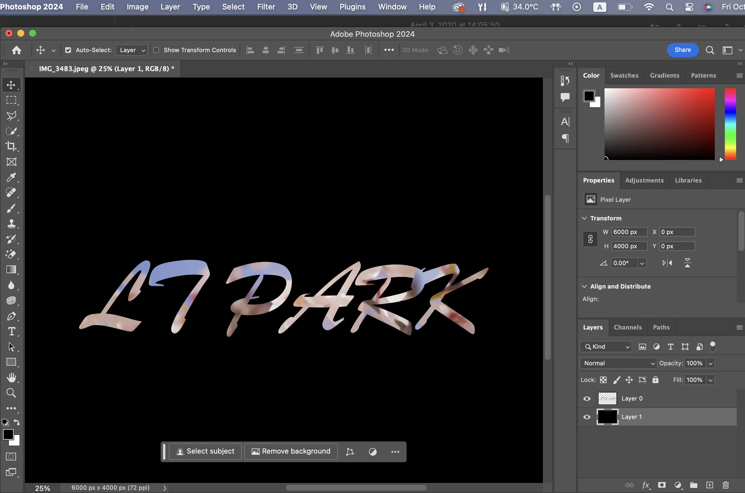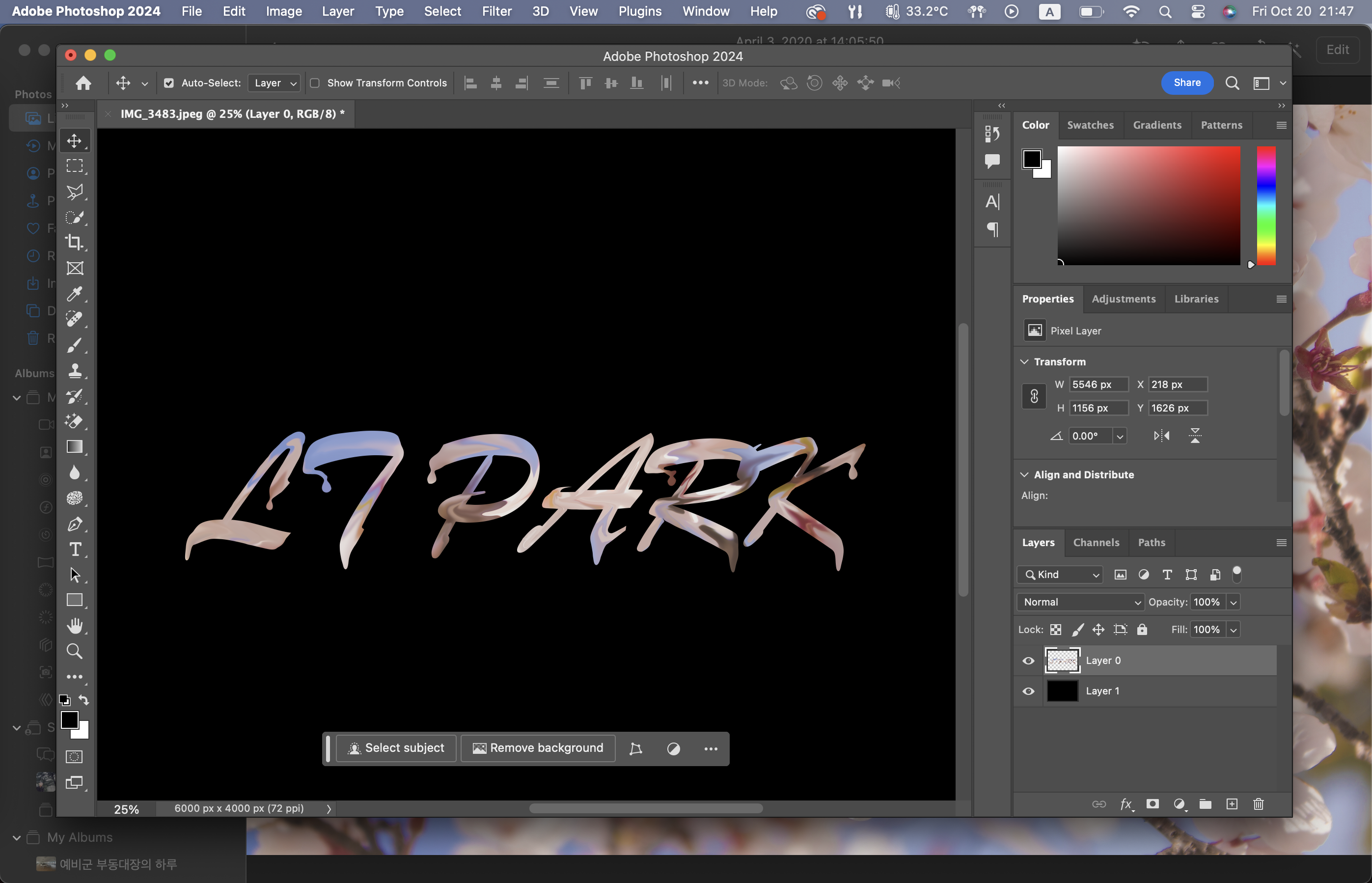 Create Clipping Mask를 누른 순간, 글자에 맞게 사진이 나온다.