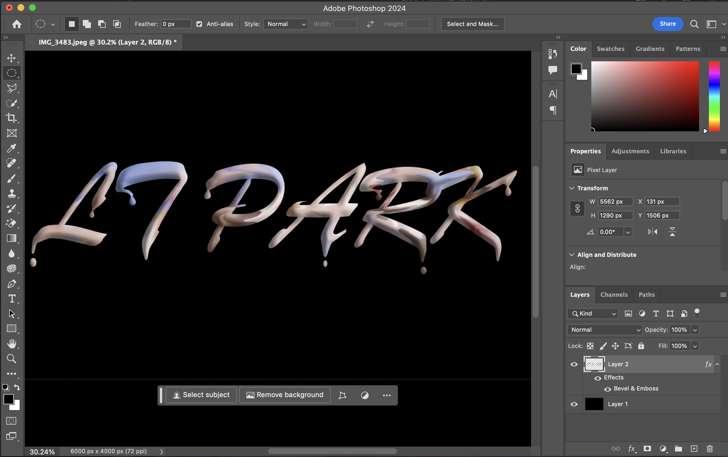 사진에서 Clipping Mask를 통해 글자에 사진색을 입히고, 글자에 Liquify를 적용하여 글자의 형태, 그리고 색감을 수정하였고, 마지막으로 Bevel & Emboss, 그리고 Burn tool을 통해서 입체감을 강화하였다.