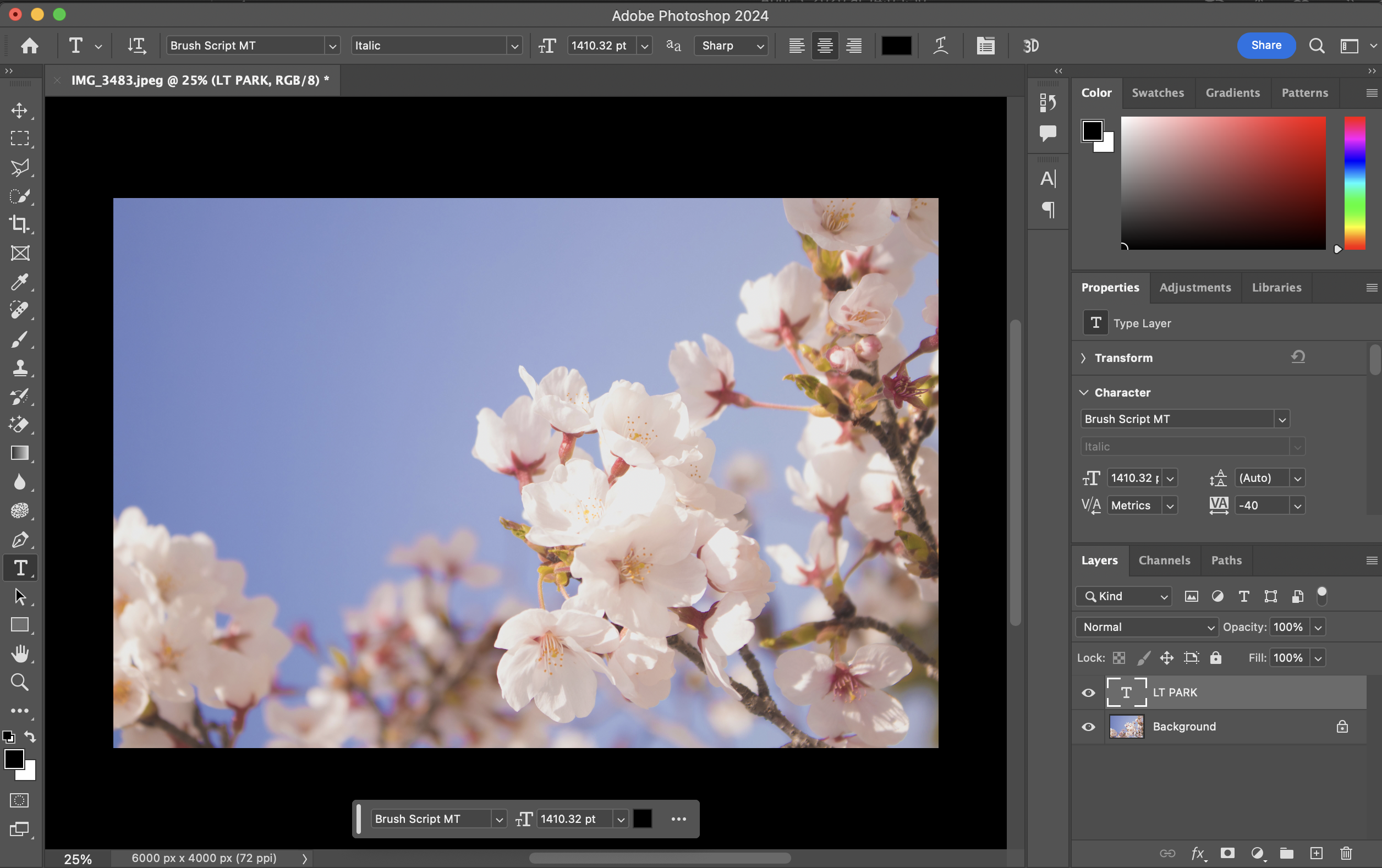 그 다음, 원하는 글자에 원하는 폰트, 그리고 사이즈를 적용해준다. (텍스트 단축키 : T)