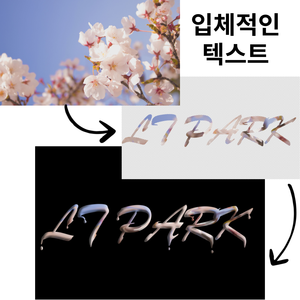 이와 같이 글자가 3D로 변한 것을 확인할 수 있는데, 더 동글게 할지, 빛은 어디를 향하게 할지 등등을 선택할 수 있다.