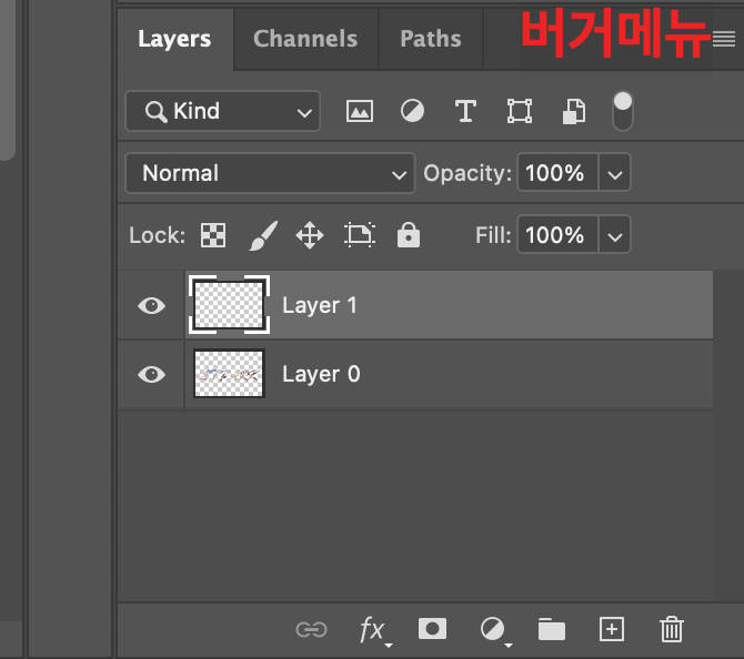 현재 배경색이 투명하기 때문에 휴지통 옆에 + 아이콘을 클릭하여 새 레이어(위 사진에서는 Layer1)를 만든 뒤