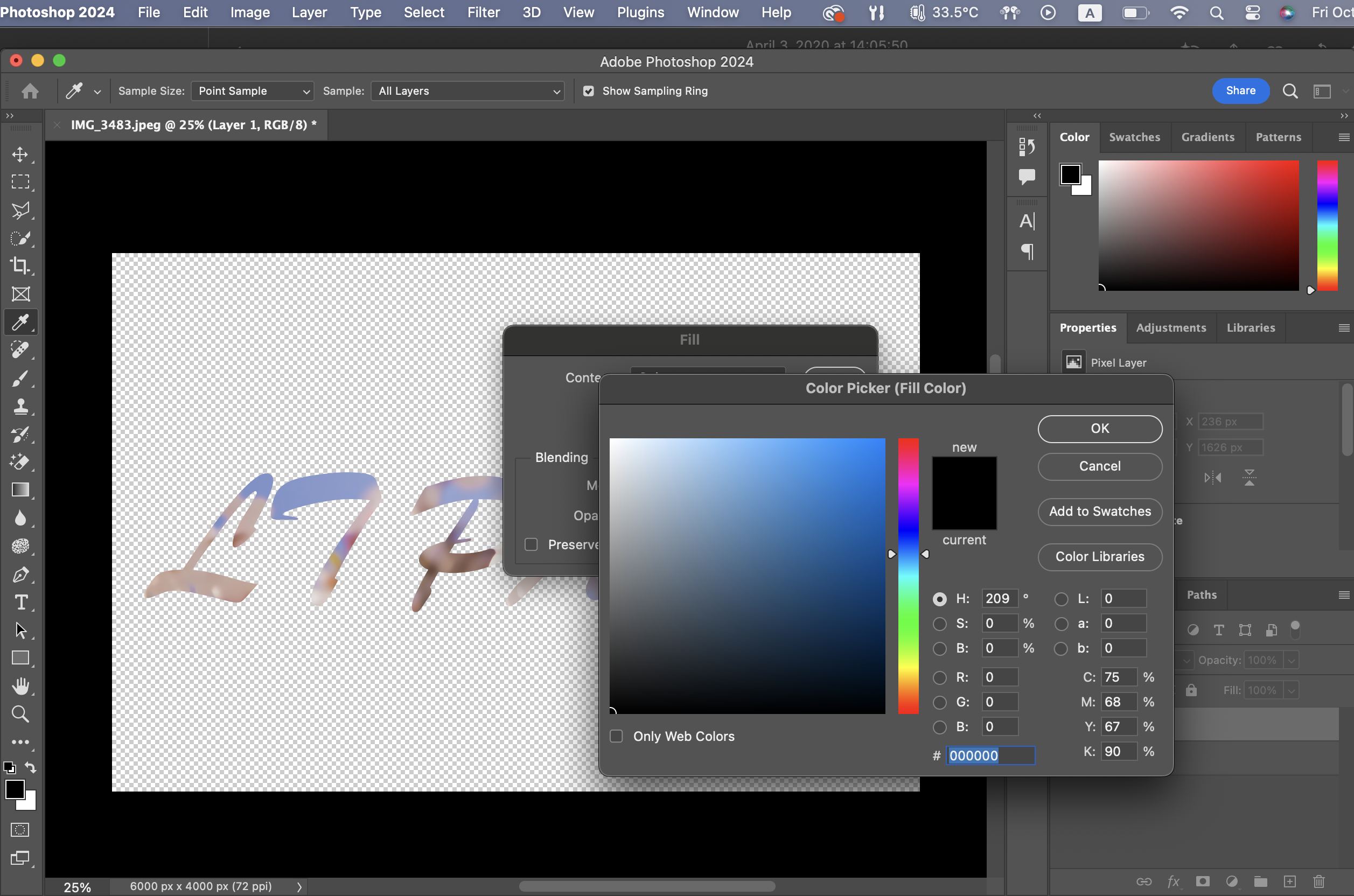그러면 위와 같이 색을 고를 수 있는 창이 뜨는데, 여기서는 완전한 검은색을 선택하였다.