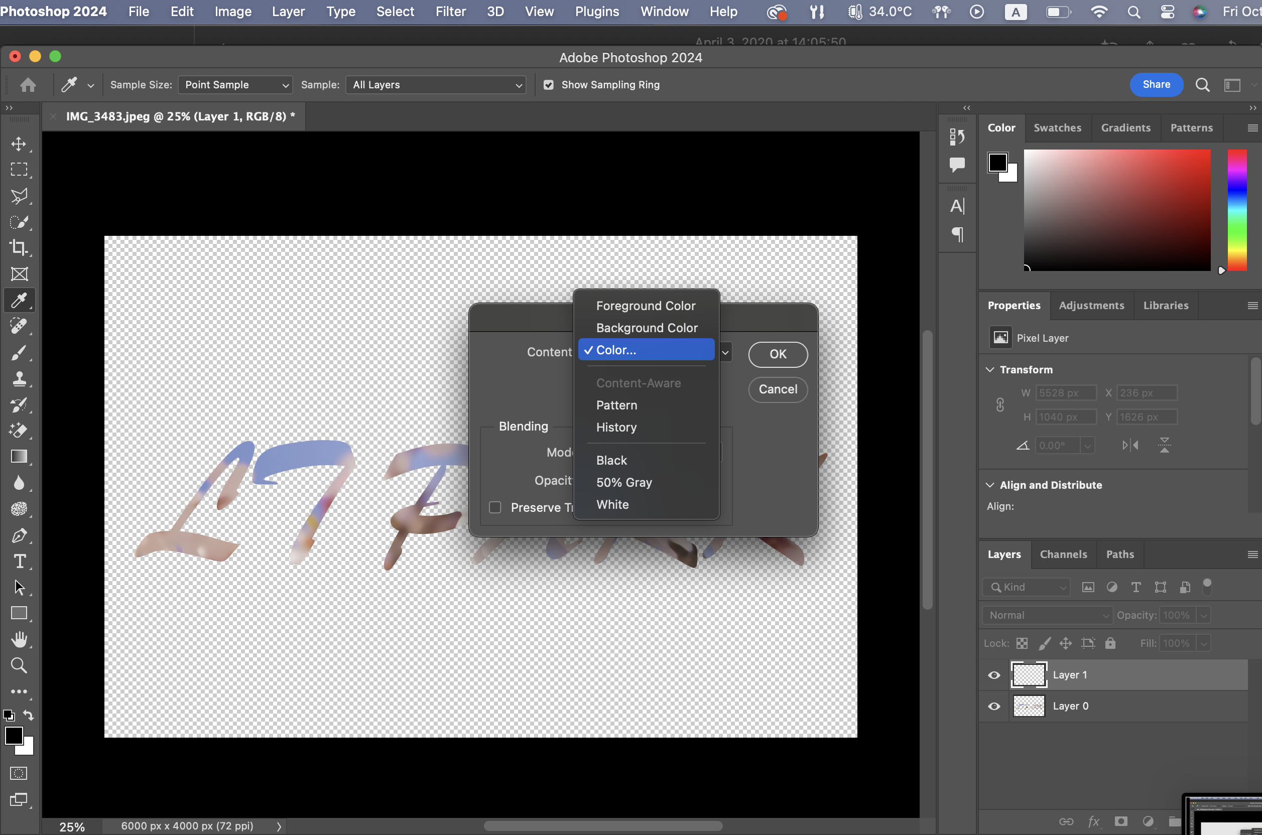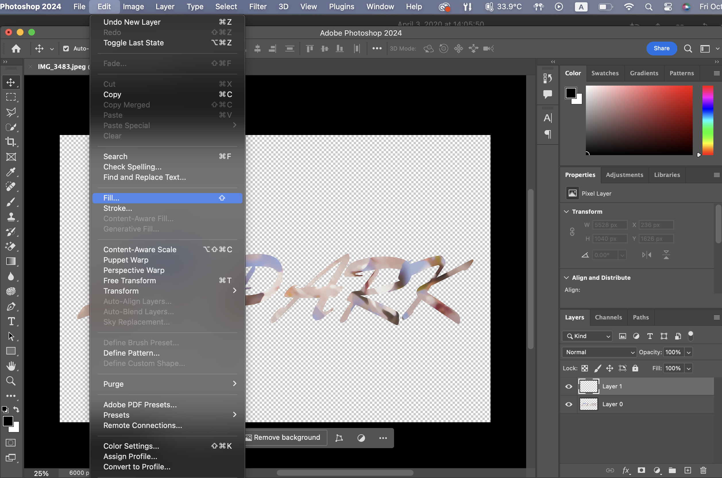 새 레이어를 선택한 뒤 Edit-Fill을 선택한다.