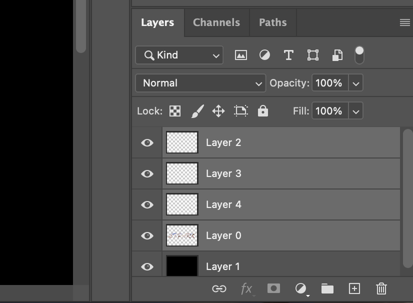그러면 배경이 검은색으로 적용된 것을 볼 수 있다. 이때, Layer0이 Layer 1보다 위에 있어야 하는데,