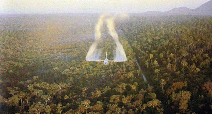 베트남 전쟁 간, 전장이 정글로 되어 있어서 골머리를 앓고 있던 미군은 수풀을 제거하기 위해서 하늘에서 고엽제를 뿌렸다.