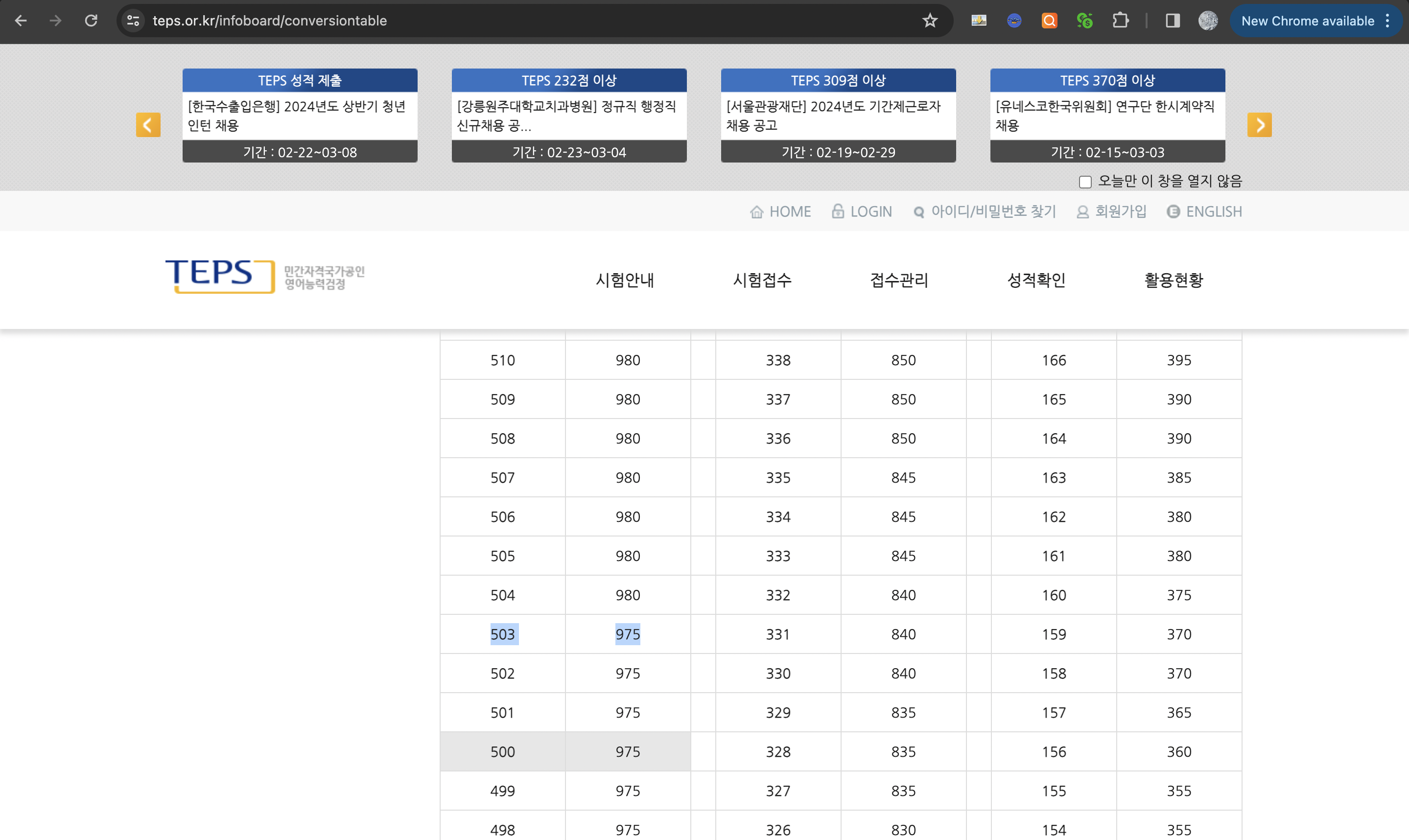 503점은 975점에 해당한다고 하는데