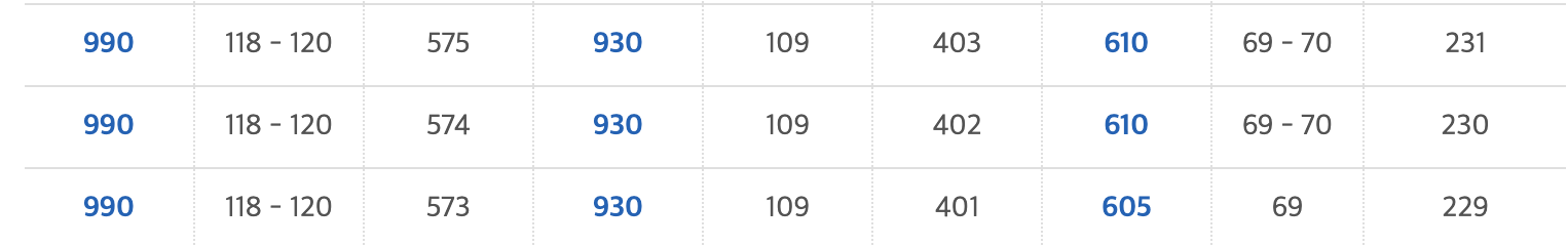 다시 환산표로 돌아가서,