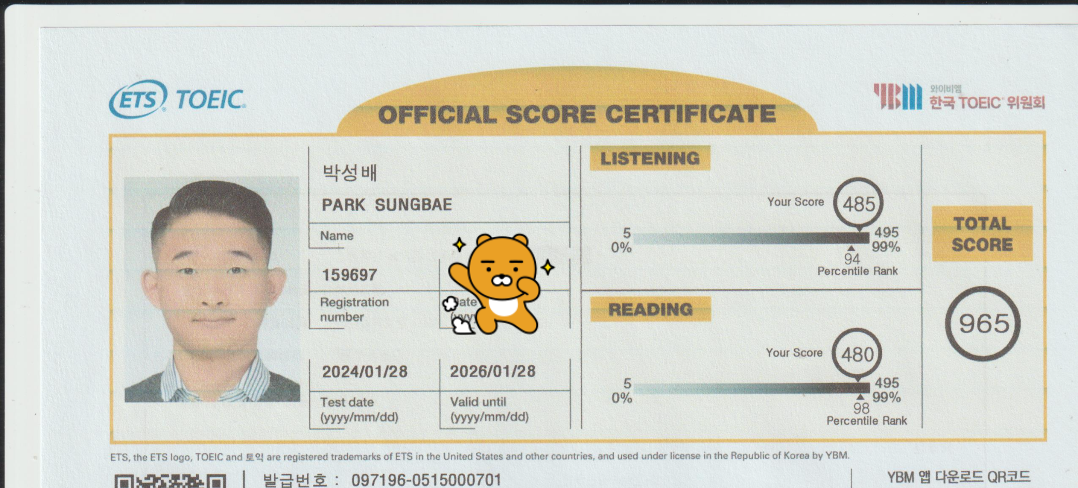 일단 본인 토익 성적은 965