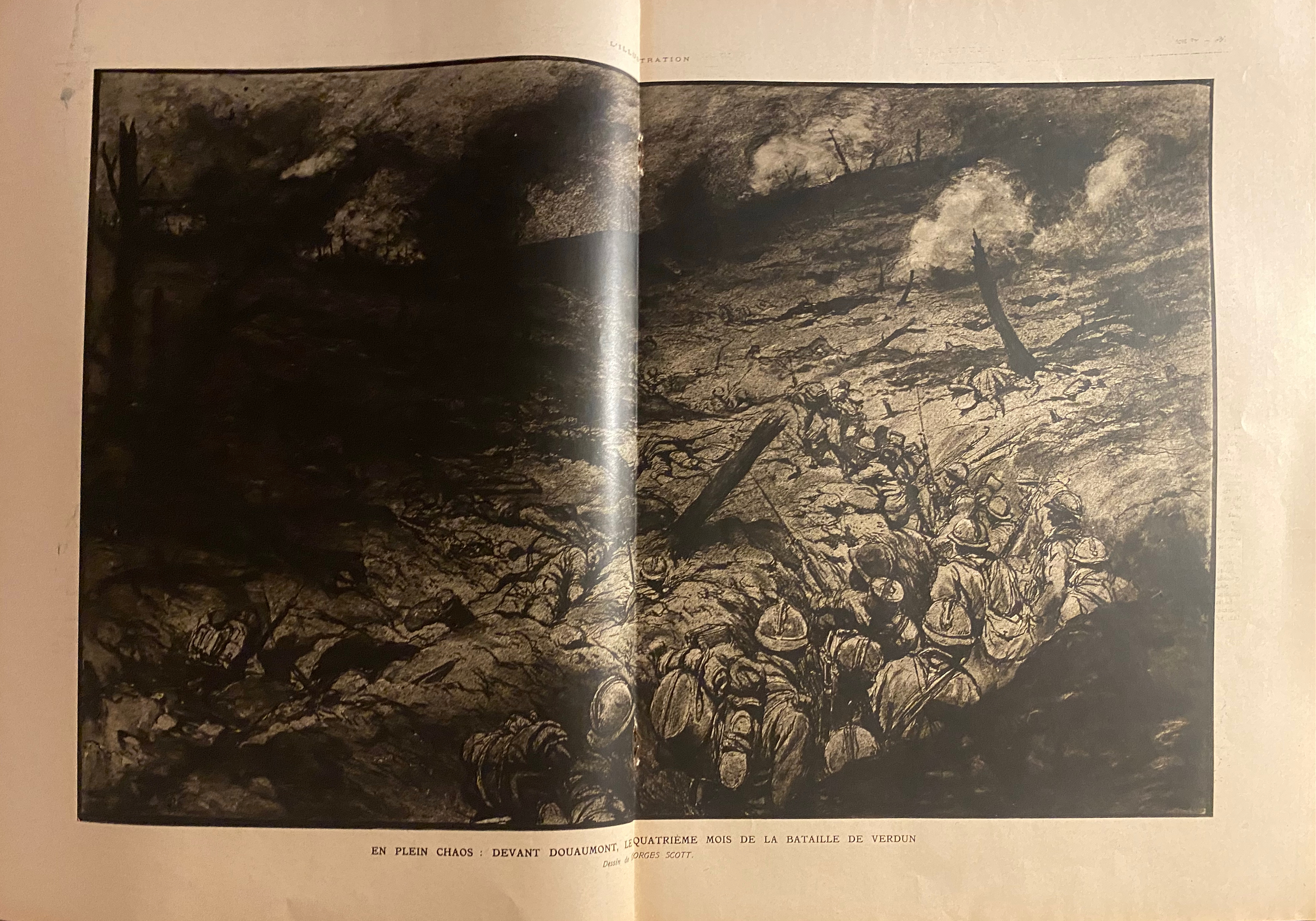 당시 참혹하던 참호전의 일상을 잔혹하게 그린 삽화다.