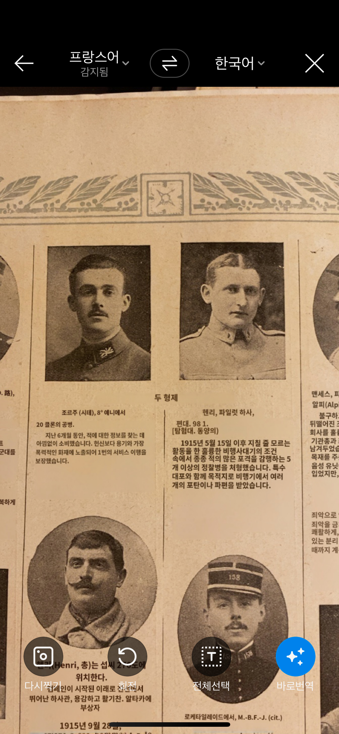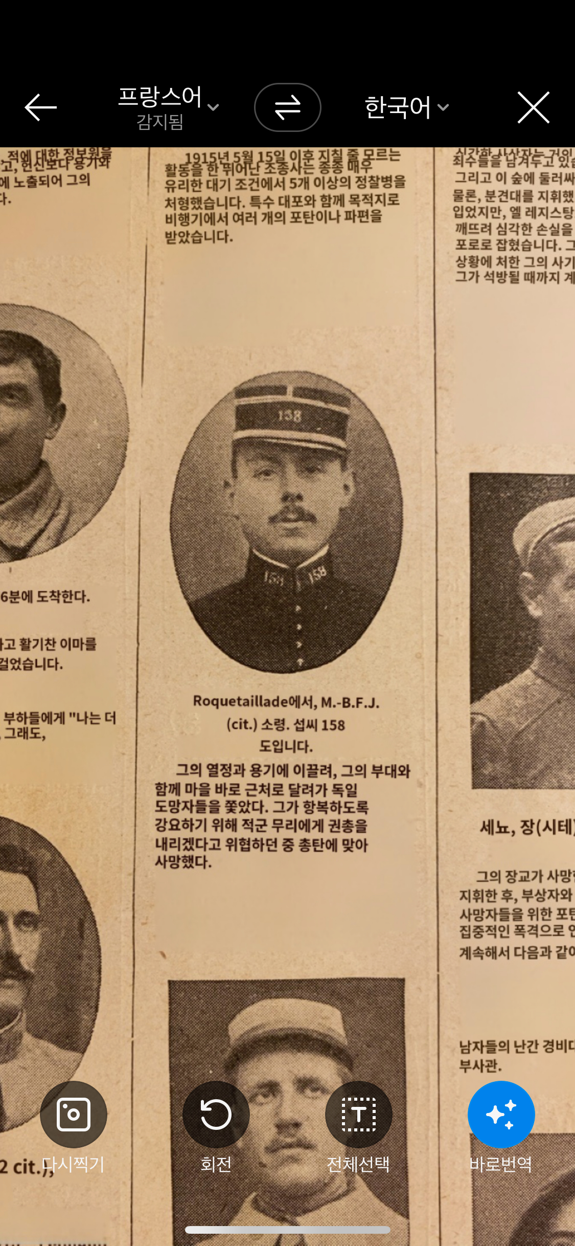 프랑스어를 못해서 파파고로 번역하며 각 군인들에게 무슨 불상사가 있었는지 확인할 수 있다.