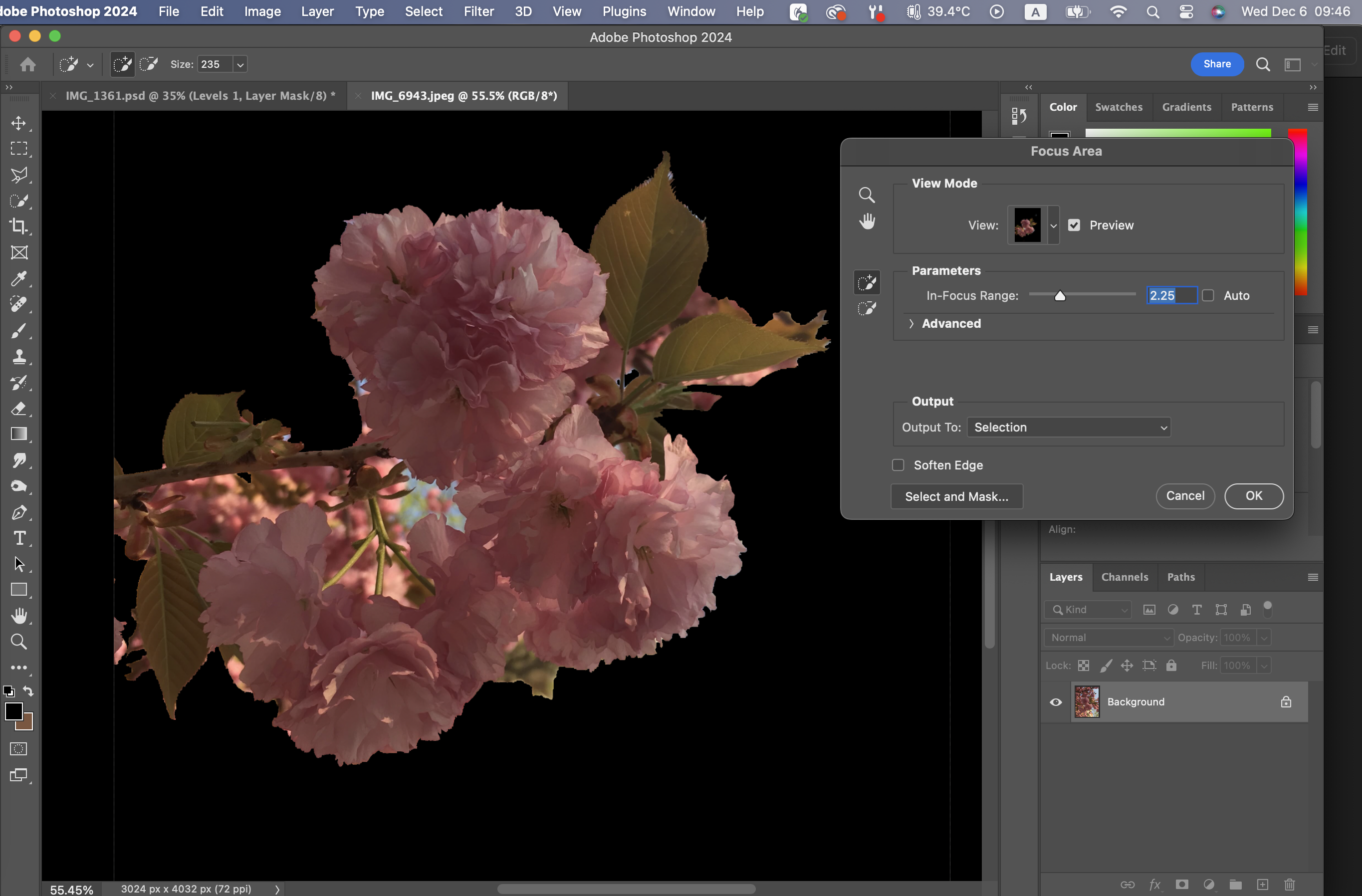 미세 조정을 하기 위해서 Select and Mask를 선택하면 된다.