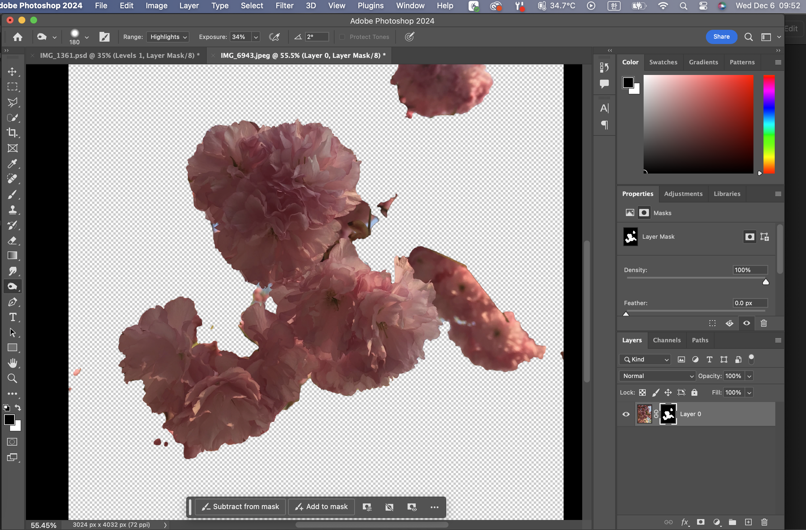 아무튼, 다시 -도구와 Select and Mask로 돌아가서,
