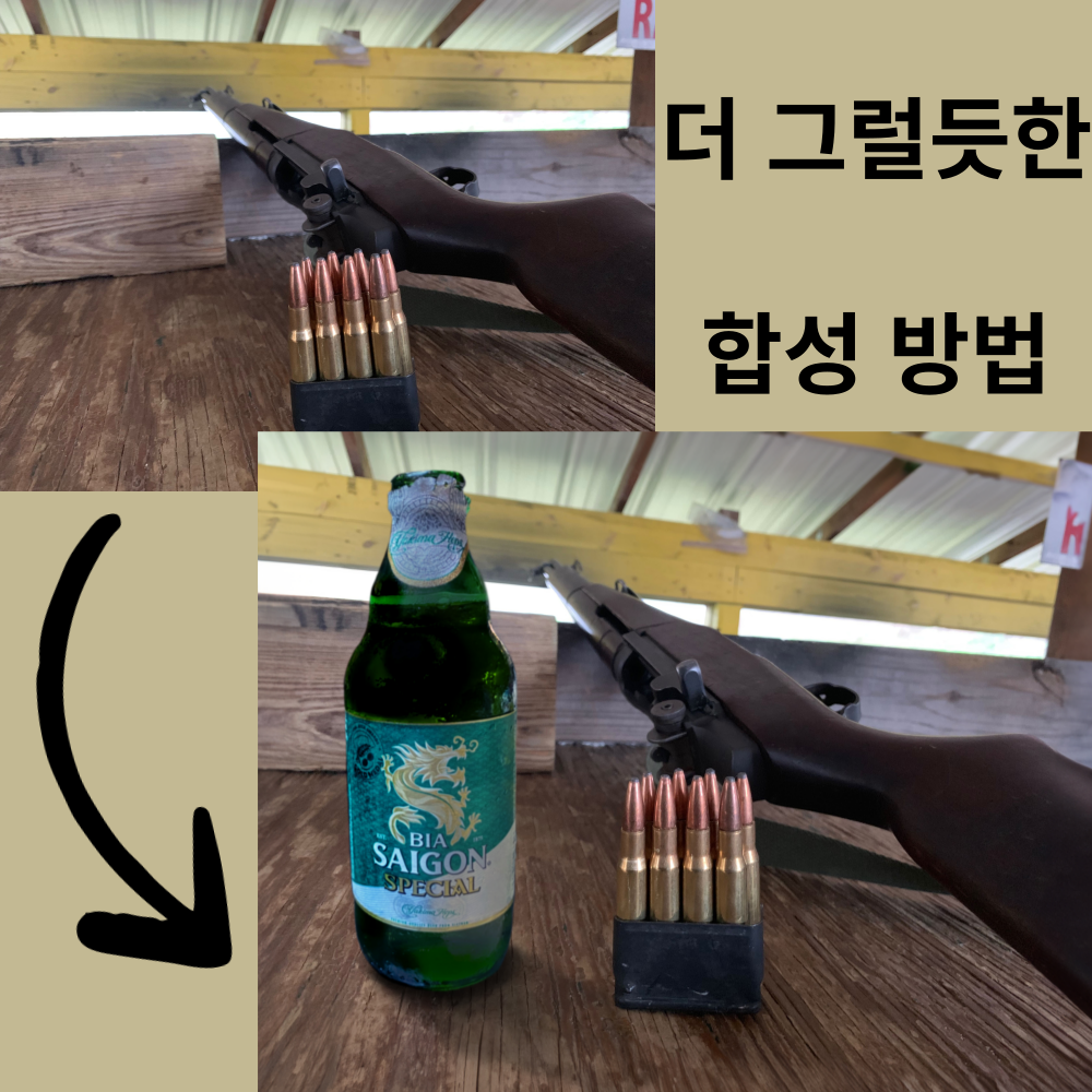 이렇게 붙여놨더니 문제가 있다. 사진을 보면 M1 개런드 308탄이 살짝 기울어진 걸 볼 수 있다.