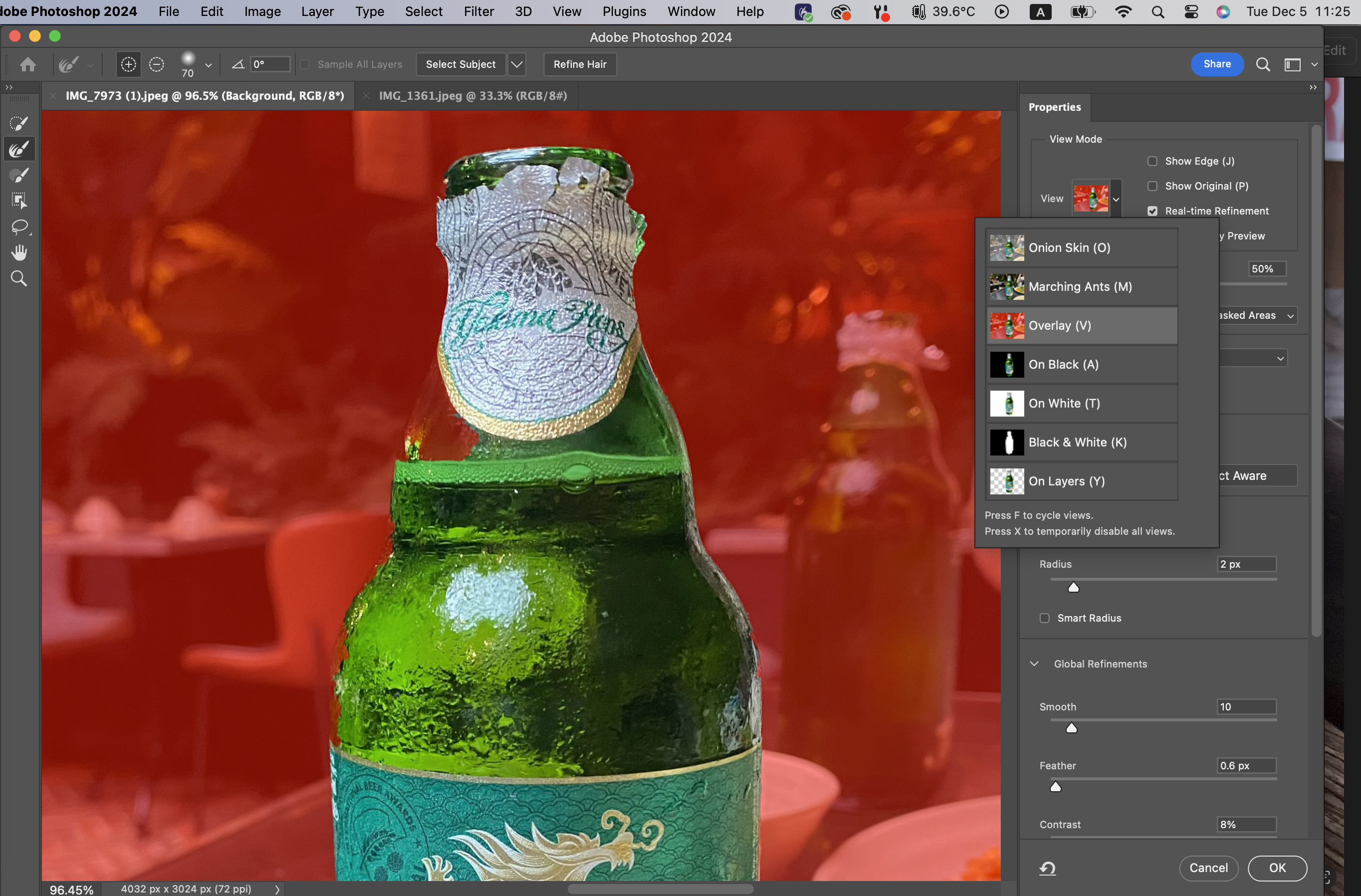 보다시피, 너무 초라하다. 그래서 Select and Mask로 미세조정을 해주어야 한다.