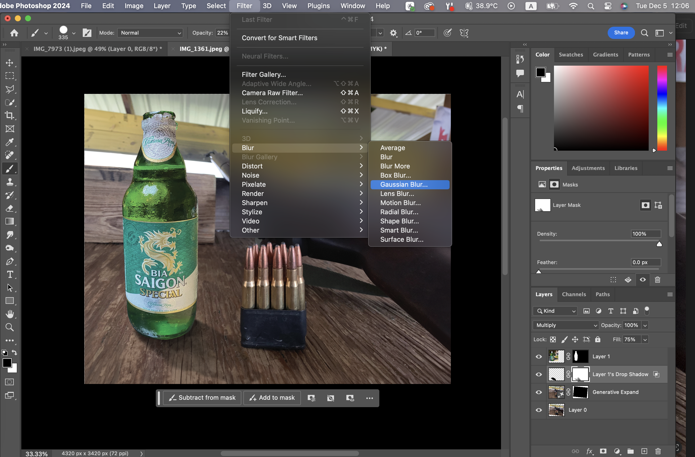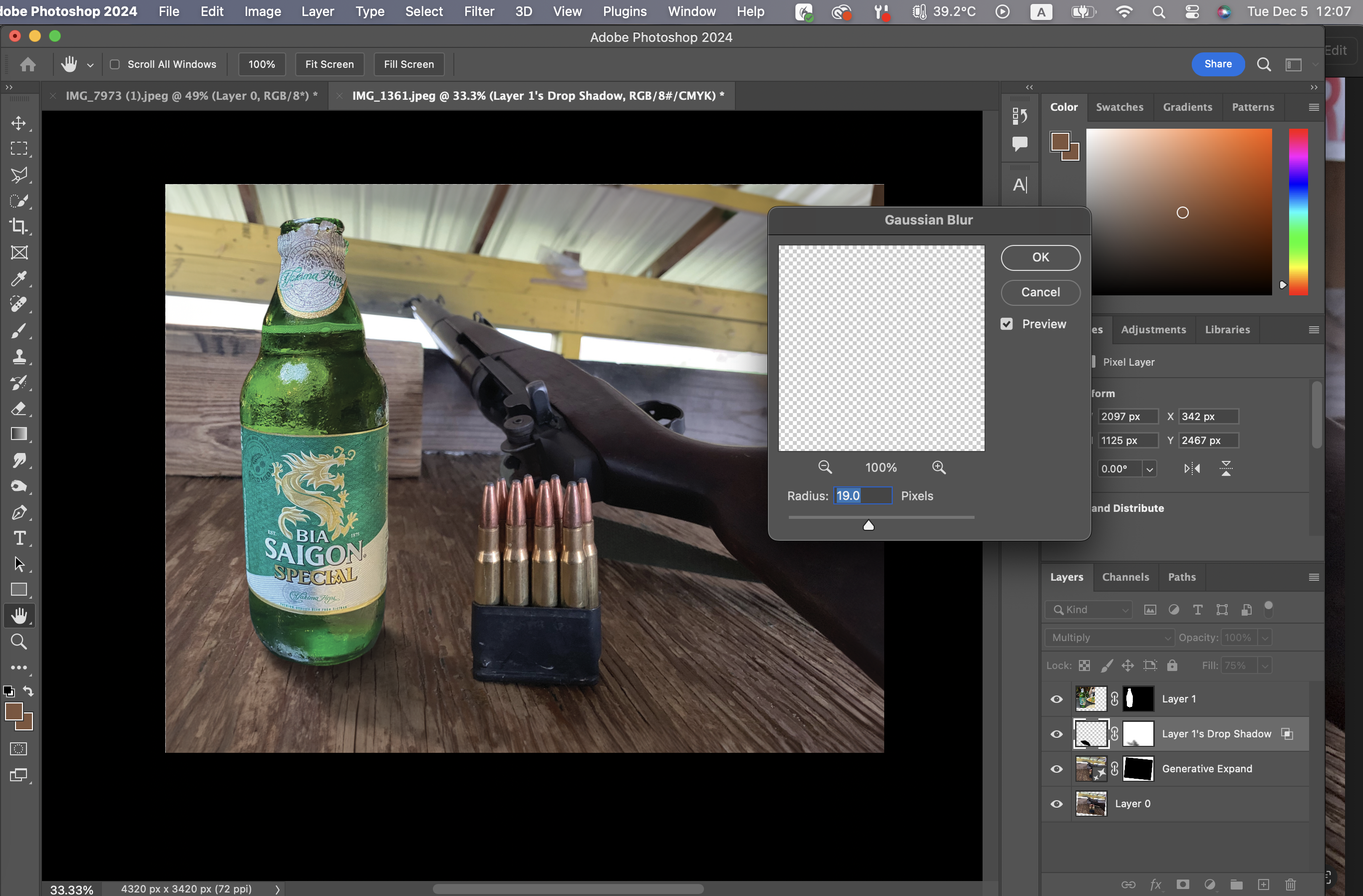 이럴 때는 그림자 레이어를 선택한 다음에 Filter-Blur-Gaussian Blur를 클릭한 후,