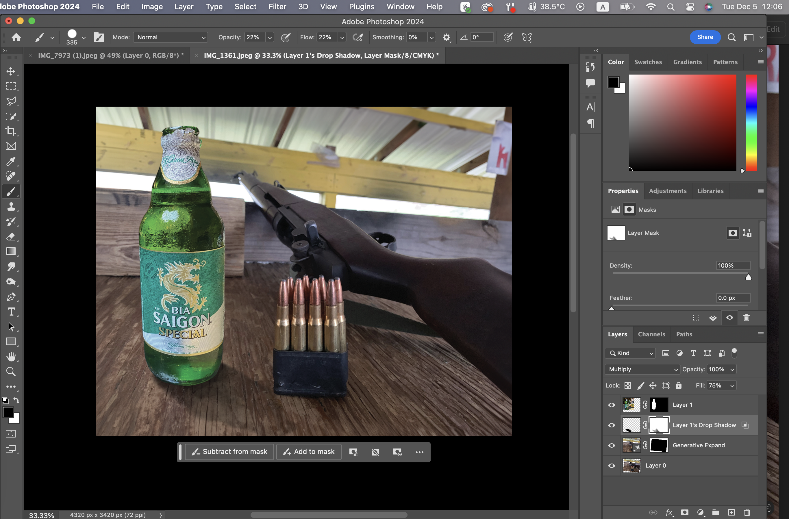 그래서 그림자에 Layer Mask를 적용시킨 뒤 붓질을 함으로써 그림자 끝 부분을 희미하게 만들 수 있다.