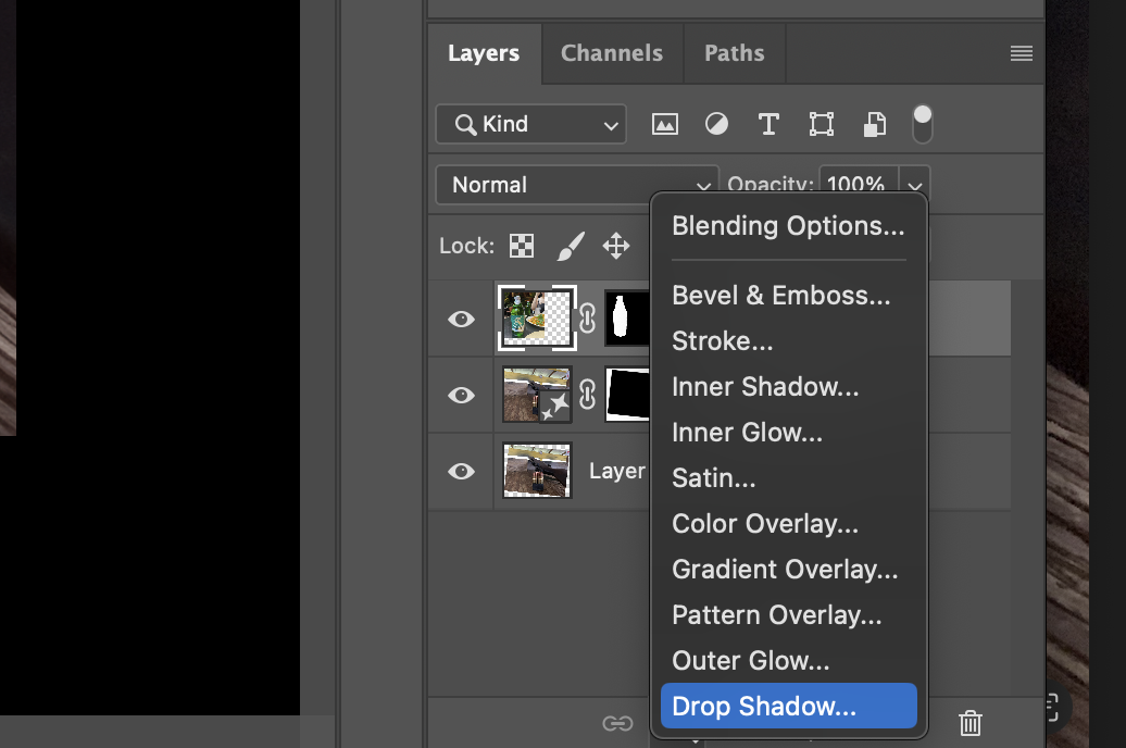 Drop shadow 효과를 우클릭하면 Create Layer 옵션을 발견할 수 있다.