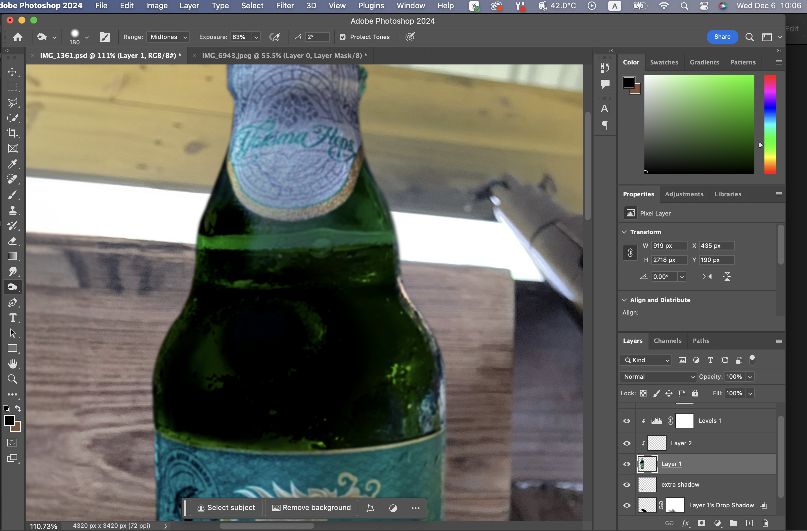 Select-Subject로 누끼를 따니까 확실히 더 잘 잡혔다.