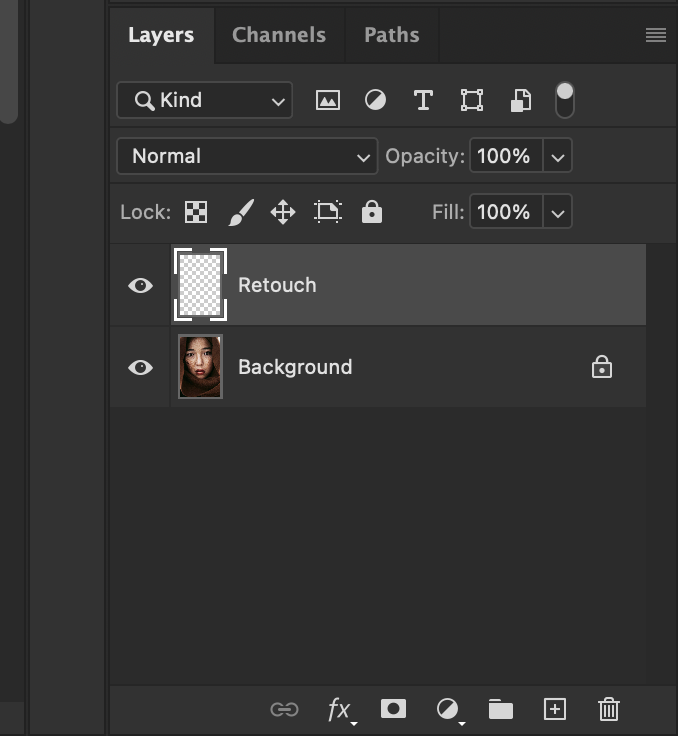 새 레이어는 보정이라는 의미에서 Retouch로 이름을 지었다.